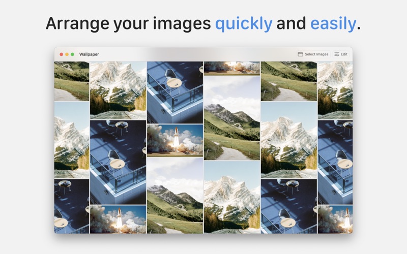 Wallpaper arranges your images according to five configurable tiling algorithms in order to create desktop backgrounds, banner images, and more. Either drag-and-drop or import your image files, then configure Wallpaper's tiling parameters to adjust the style, shape, size, and background colour of the final image. JPG, PNG, TIF, PSD, AI, EPS, PDF, and HEIC files, as well as folders of such files, are supported.