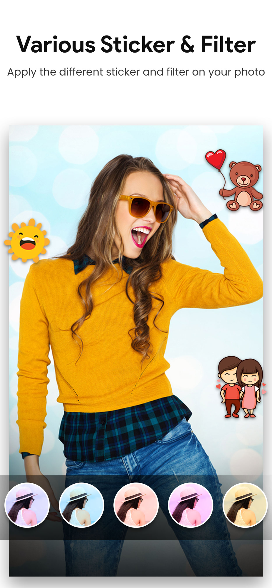 Change the vibe of your picture by adding our variety of amazing filters.