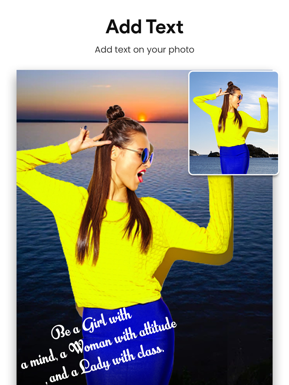 Pinch Zoom and rotate to re-size and adjust the photo to the background.