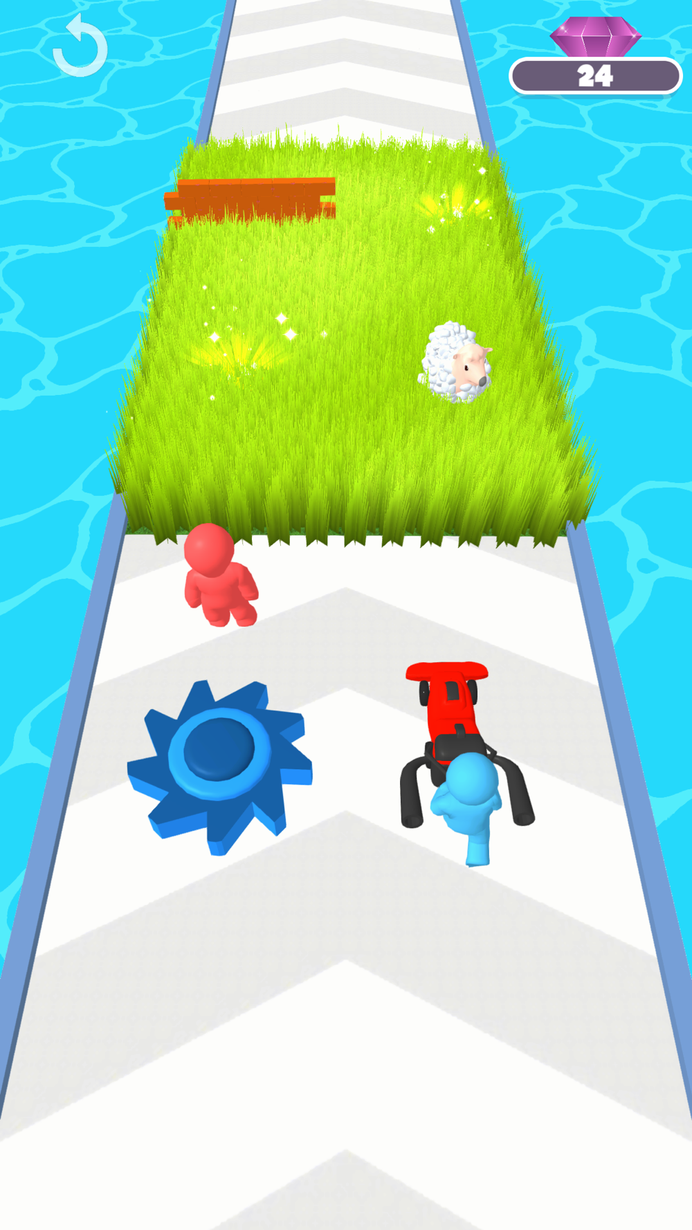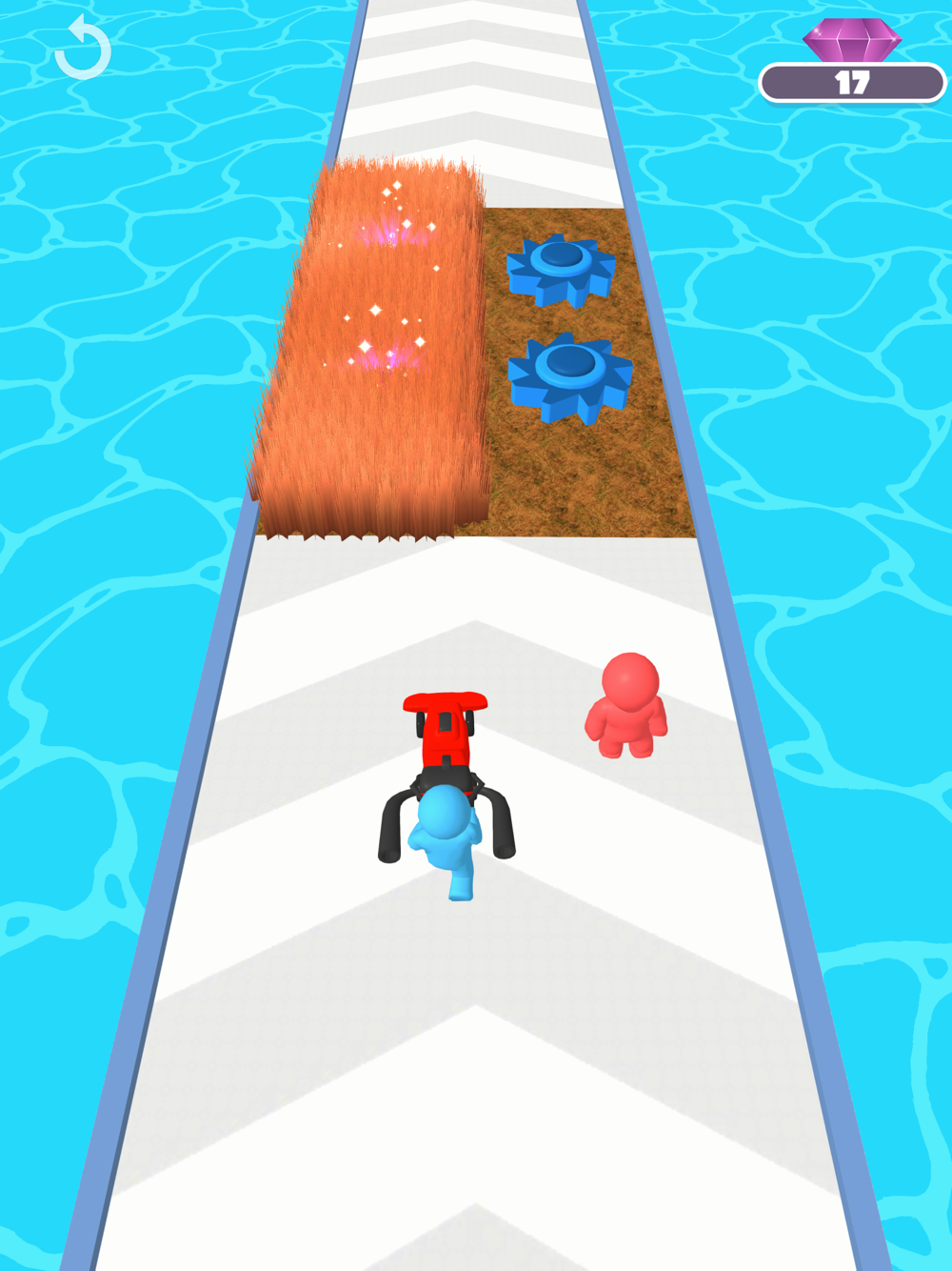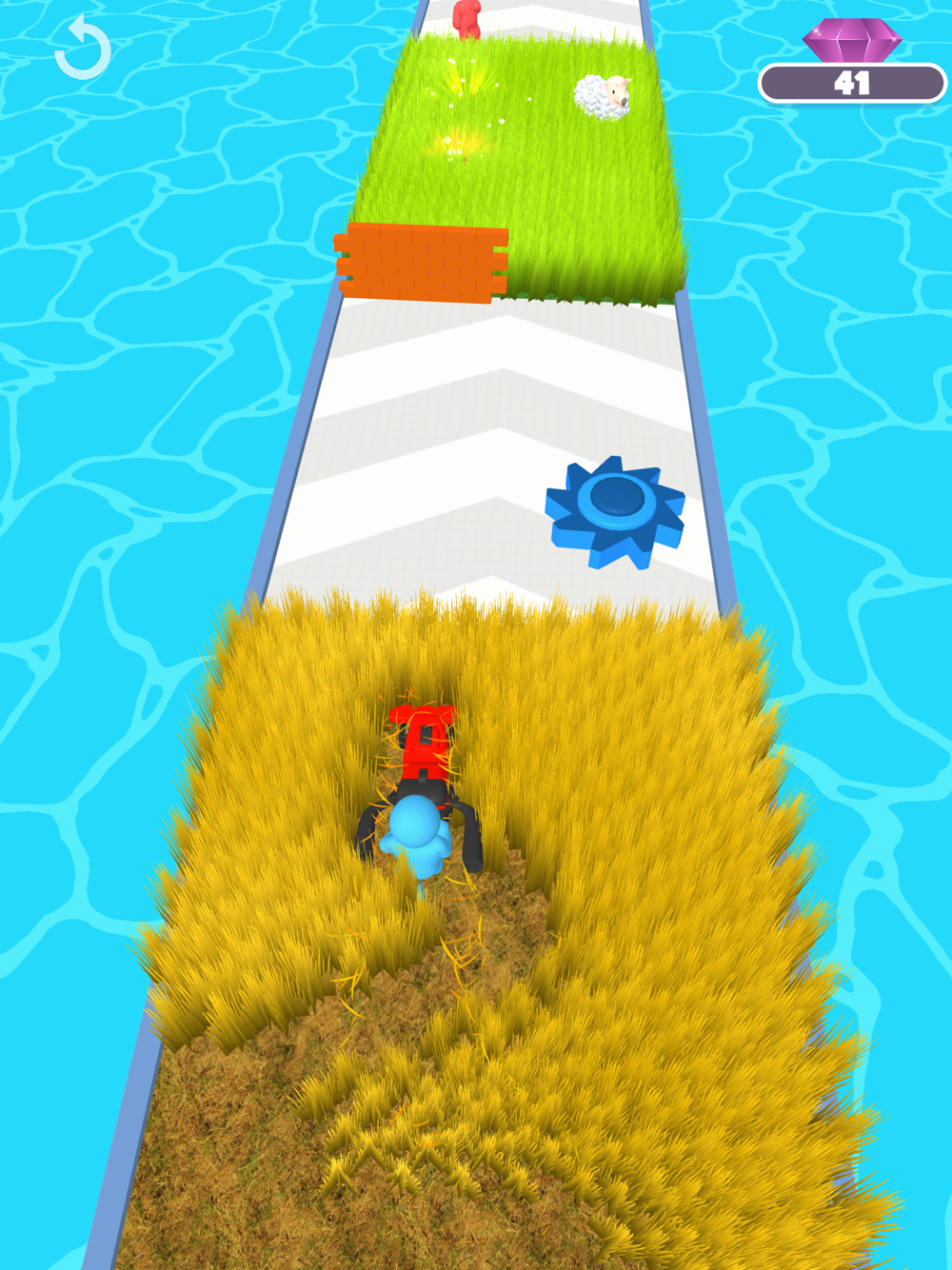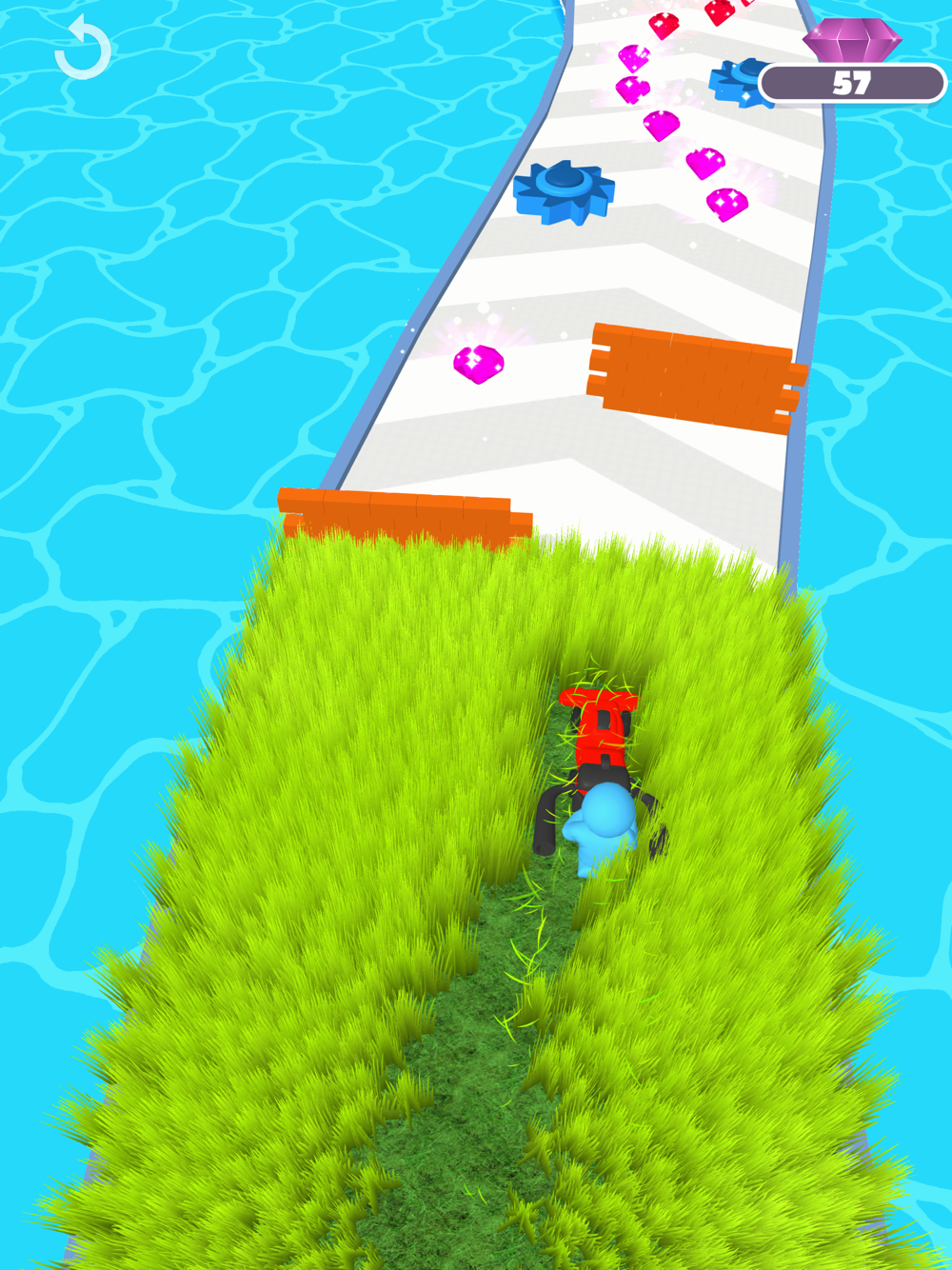 Move forward by mowing the grass and reach the end . be careful not to get caught