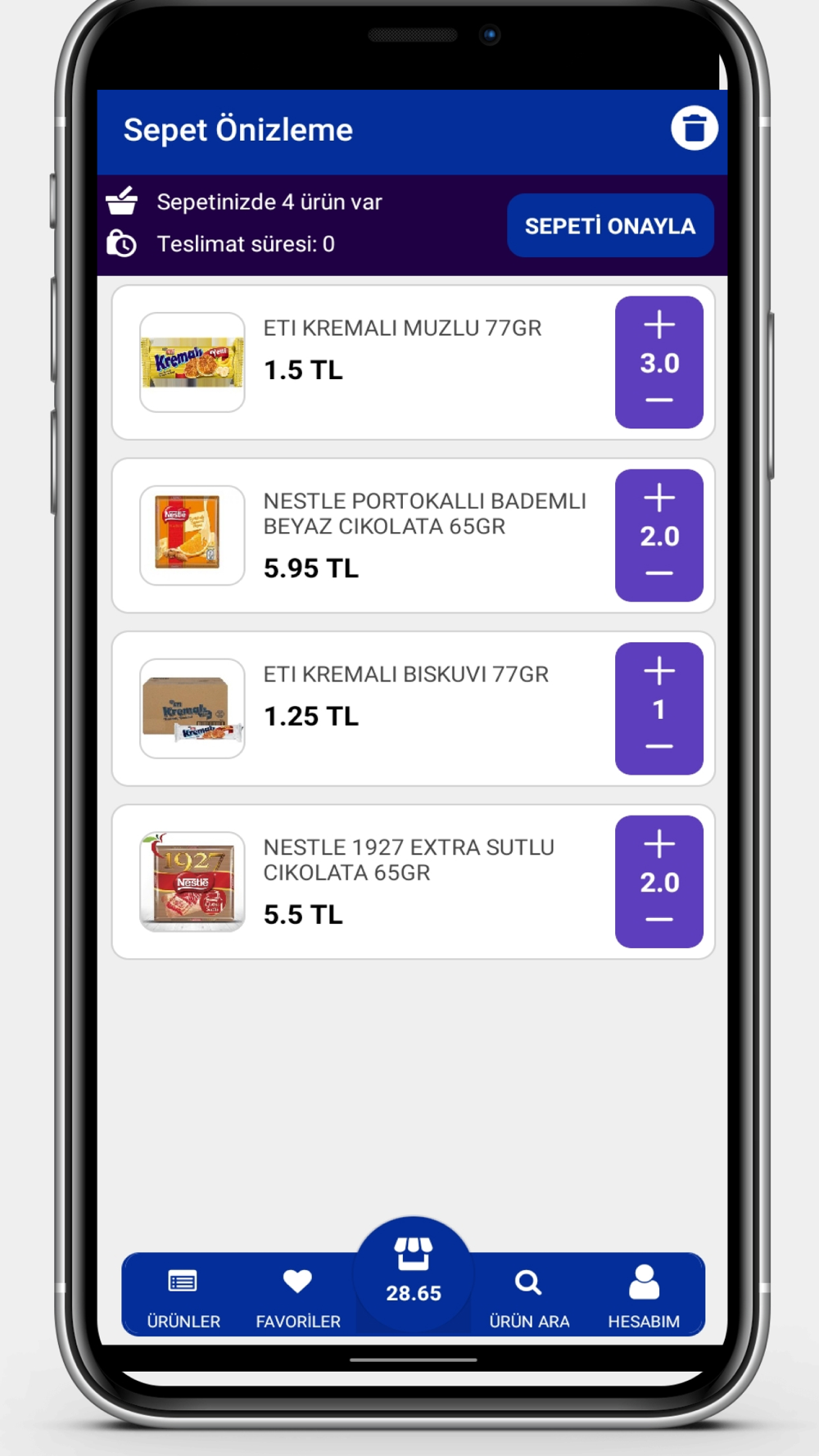 Kolayca sipariş verin, hızlıca kapınıza kadar getirelim. Geniş ürün yelpazemiz ile cebinizdeyiz.