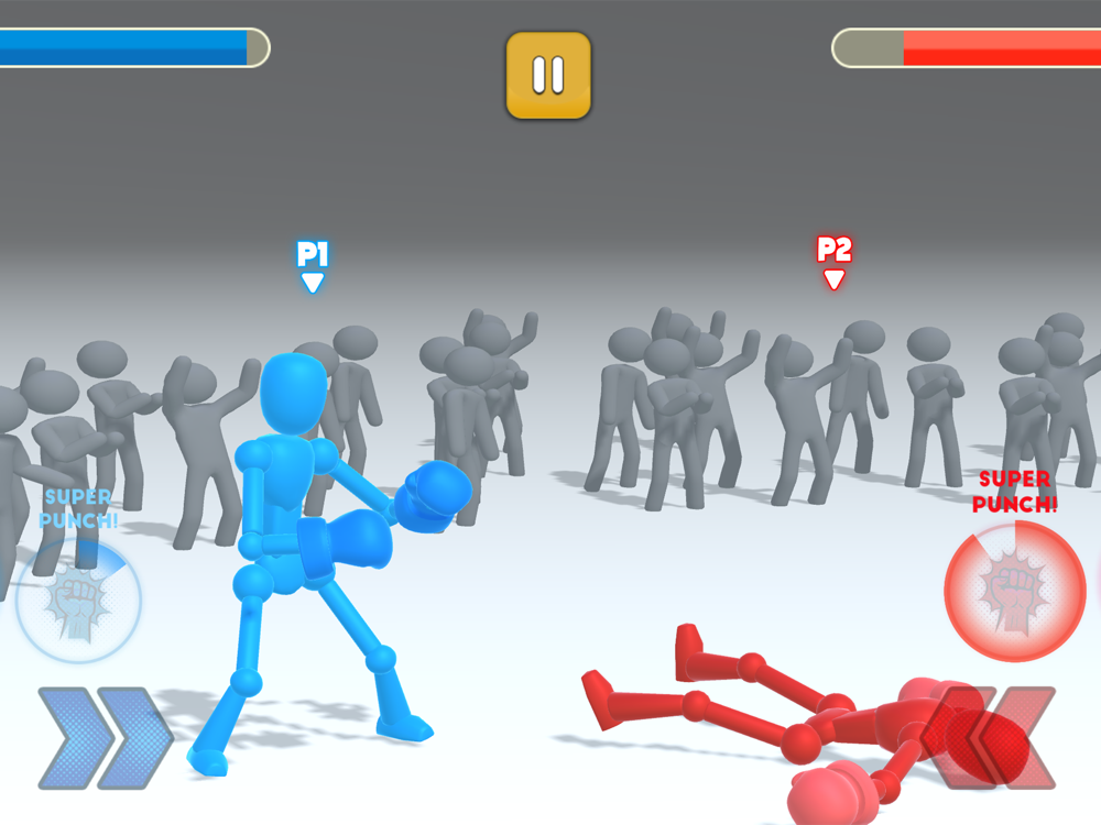 When you enter the ring, you can see the excitement of the spectators who support you. In order not to waste their support, focus and feel all your strength in your fists. Start 3-2-1! Walk on top of your opponent and start hitting your opponent with your fists. Wait for the right time to knock down your opponent with the strongest punch. When the “Super Punch” button is activated for the powerful punch, approach your opponent and hit the punch in your opponent's face. Remember, your opponent has the same advantageous button. Be on the alert for the super punch that will come from him and try to escape in time.