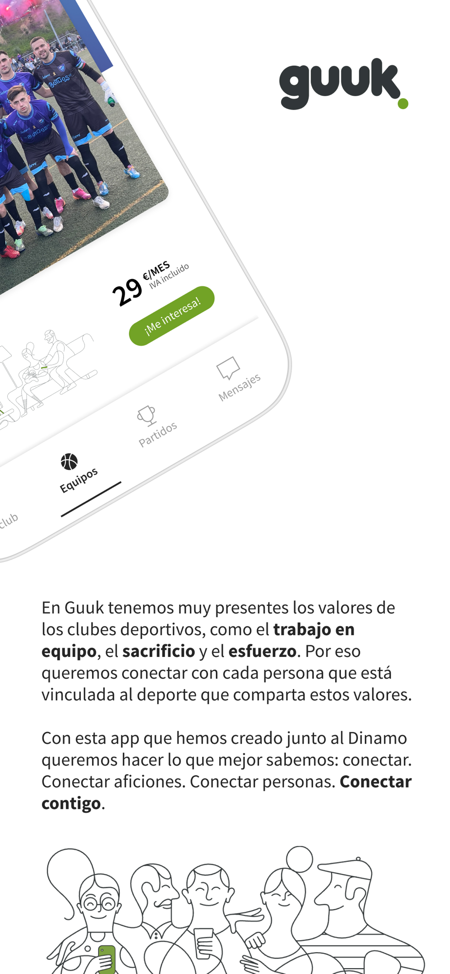 Con la creación de esta aplicación, en Guuk queremos hacer lo que mejor sabemos: Conectar. Conectar con la afición. Conectar con las personas. Conectar contigo.