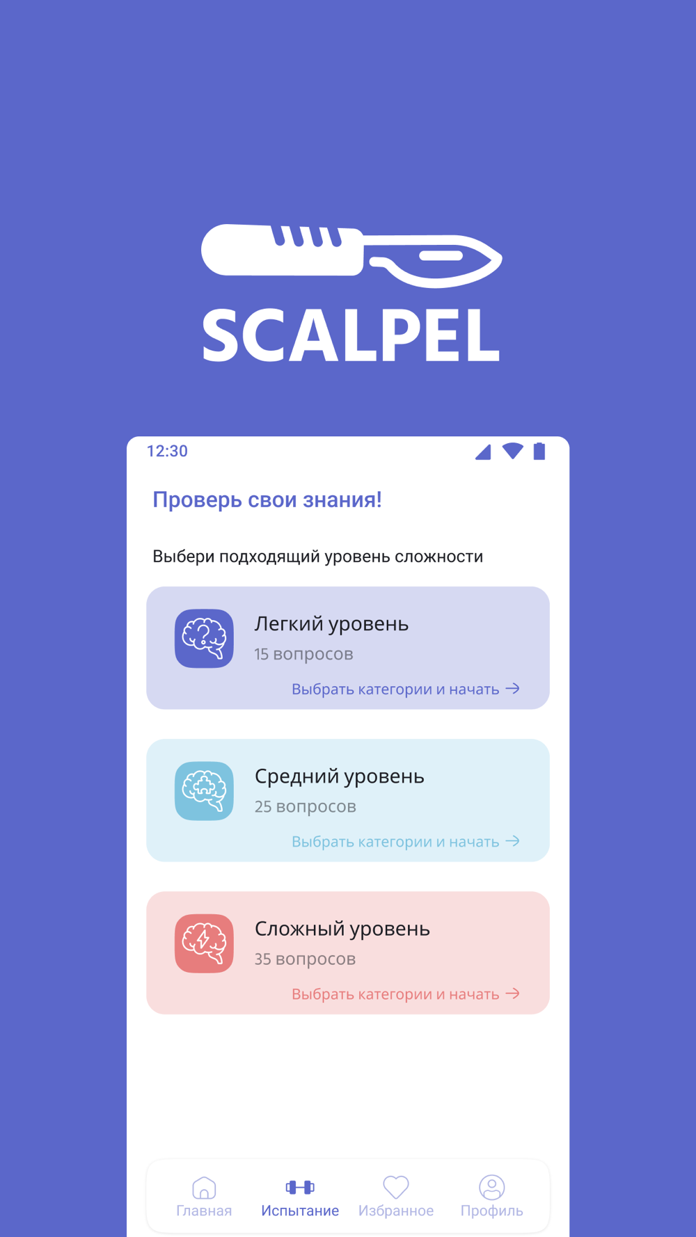 Одной из главных фишек приложения являются тесты по различным категориям инструментов для проверки ваших знаний и закрепления изученного материала.