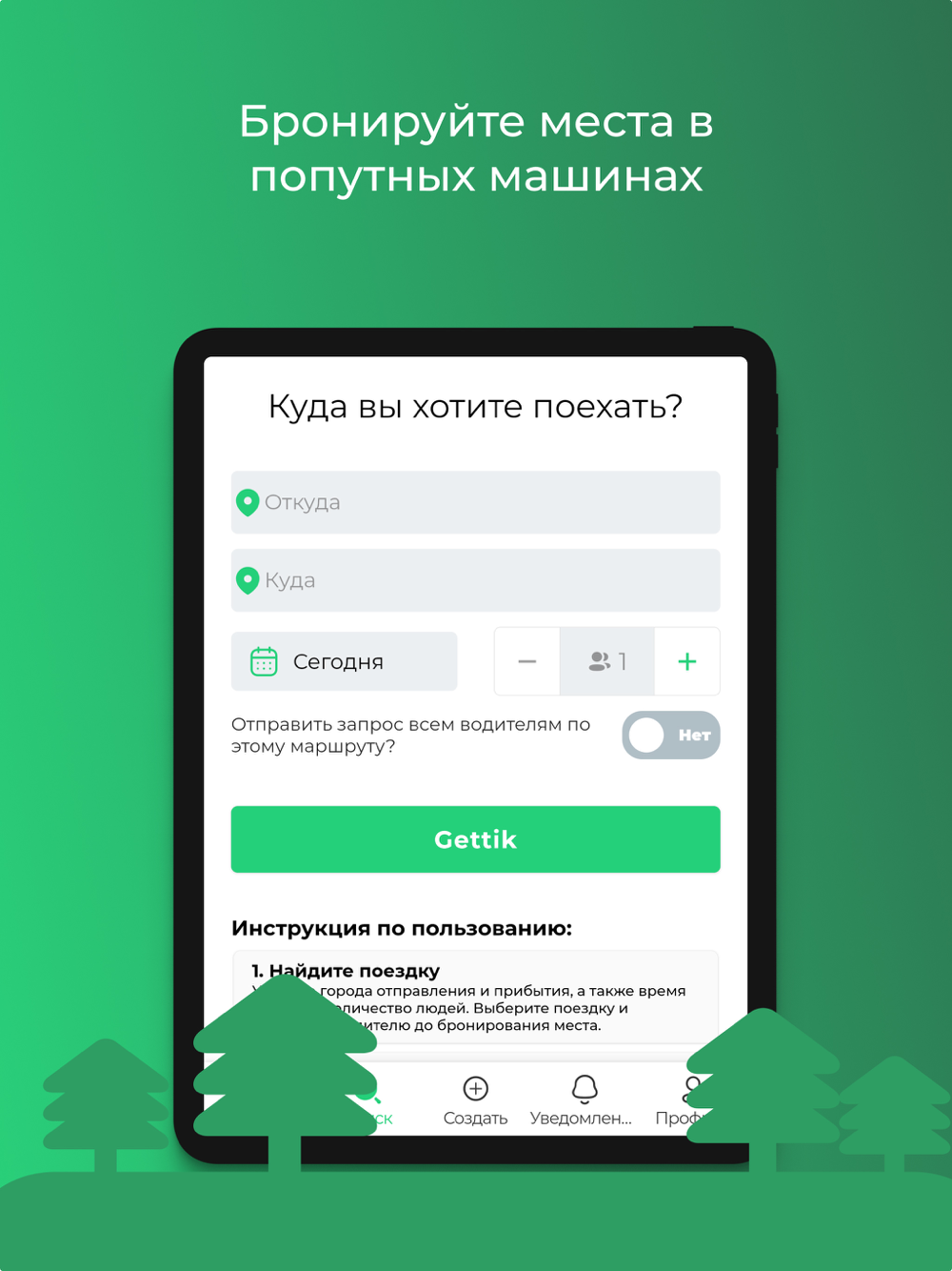 Gettik - это платформа, на которой вы можете искать недорогие поездки и проверенных пассажиров. Gettik объединяет водителей и пассажиров в нужном месте в нужное время, чтобы они могли путешествовать вместе и делить расходы на поездку.