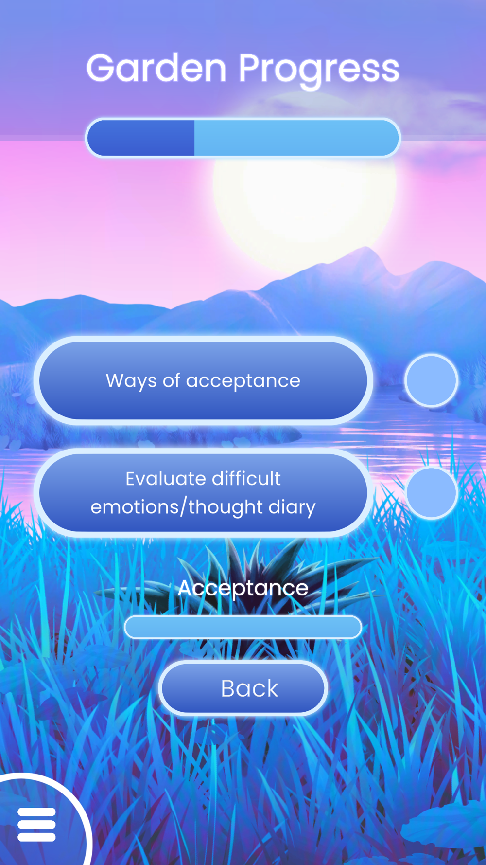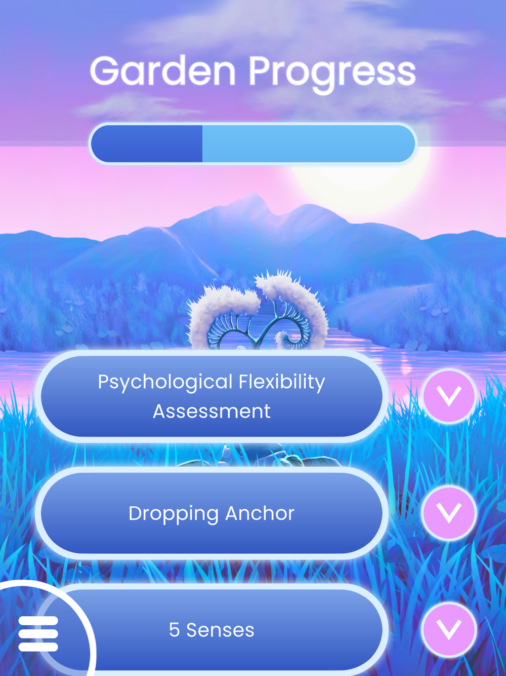 Improve your psychological flexibility with ACT. Using the BetterACT app, you can start applying ACT when you are on the bus, at home or in a therapy session. Explore the garden of BetterACT and grow your plants as you increase your knowledge and ability in psychological flexibility.