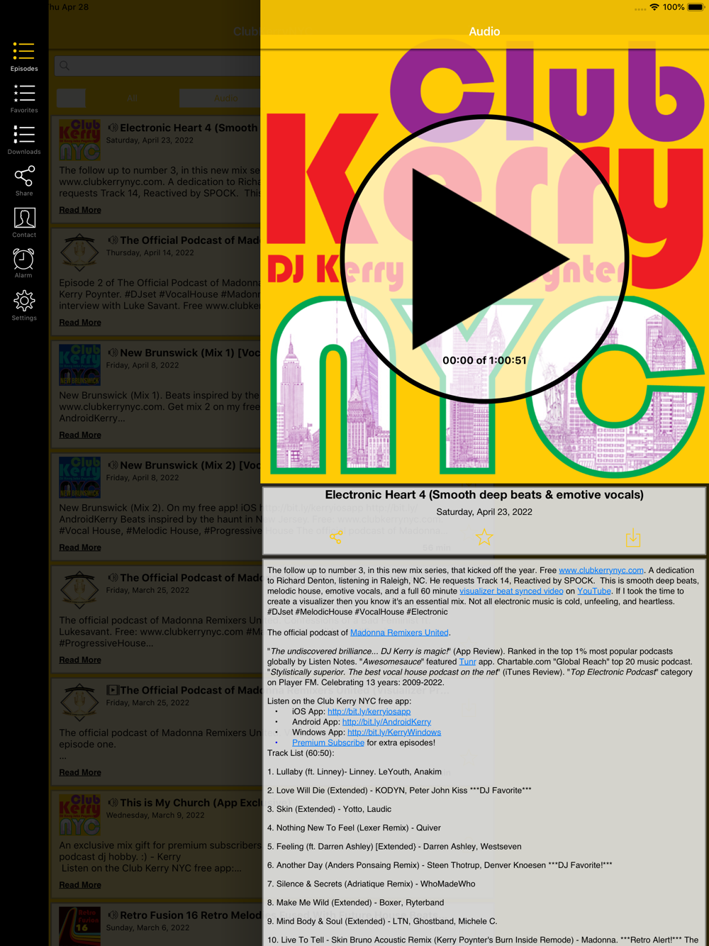 This is the most convenient way to access my DJ sets “Club Kerry NYC” on your phone or tablet. With this app you are always connected to the latest episodes. You can also star your favorite episodes and save them to a list so you can easily enjoy them over and over! This app is complete access to all my mix episodes since 2009. If you're a fan of my work then you won't want to be without it!