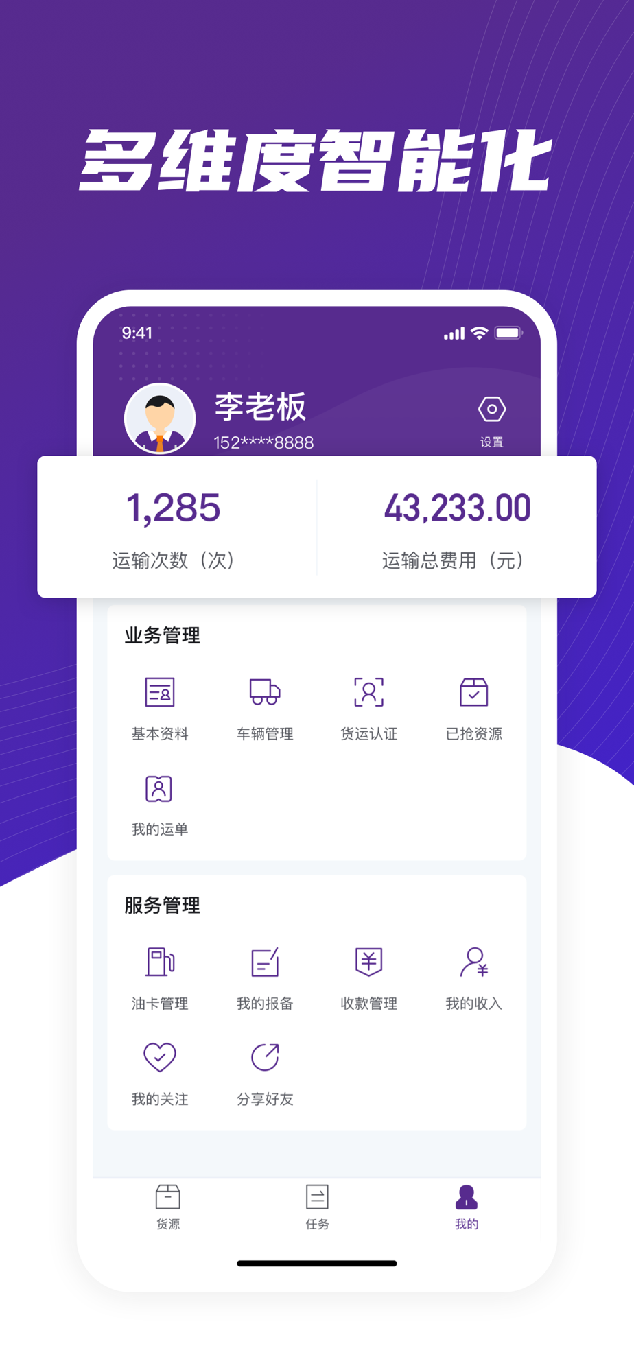 集成多家网络货运平台的运输管理工具。智运+是中通智运数字科技有限公司推出的一款集成多家网络货运平台的运输管理APP,用于司机的运输管理和费用结算,司机不需要单独入驻其他网络货运平台,使用智运+平台便可以面向多家网络货运,快捷、方便。