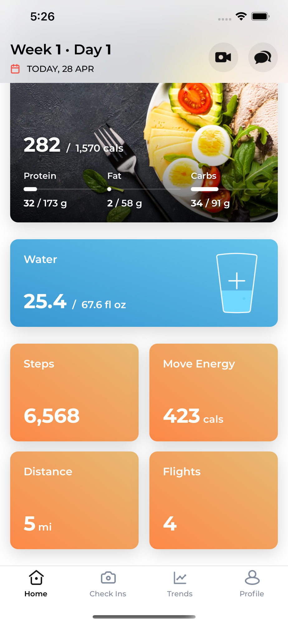 The app integrates with Apple Health to show your daily activity - distance, steps, active energy, and flights to help you better achieve your goals.