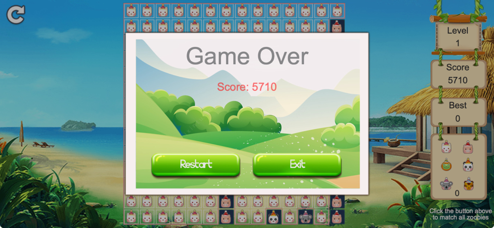 At the beginning of the game, the zoobies in the upper left corner of the screen is used as the matching-area. Click the zoobie in the lower right corner of the screen to change the type of zoobie in the matching-area. If there are zoobies of the same type around, they will be merged to form a larger matching-area. If you match all zoobies within the number, you can enter the next level, otherwise game over.