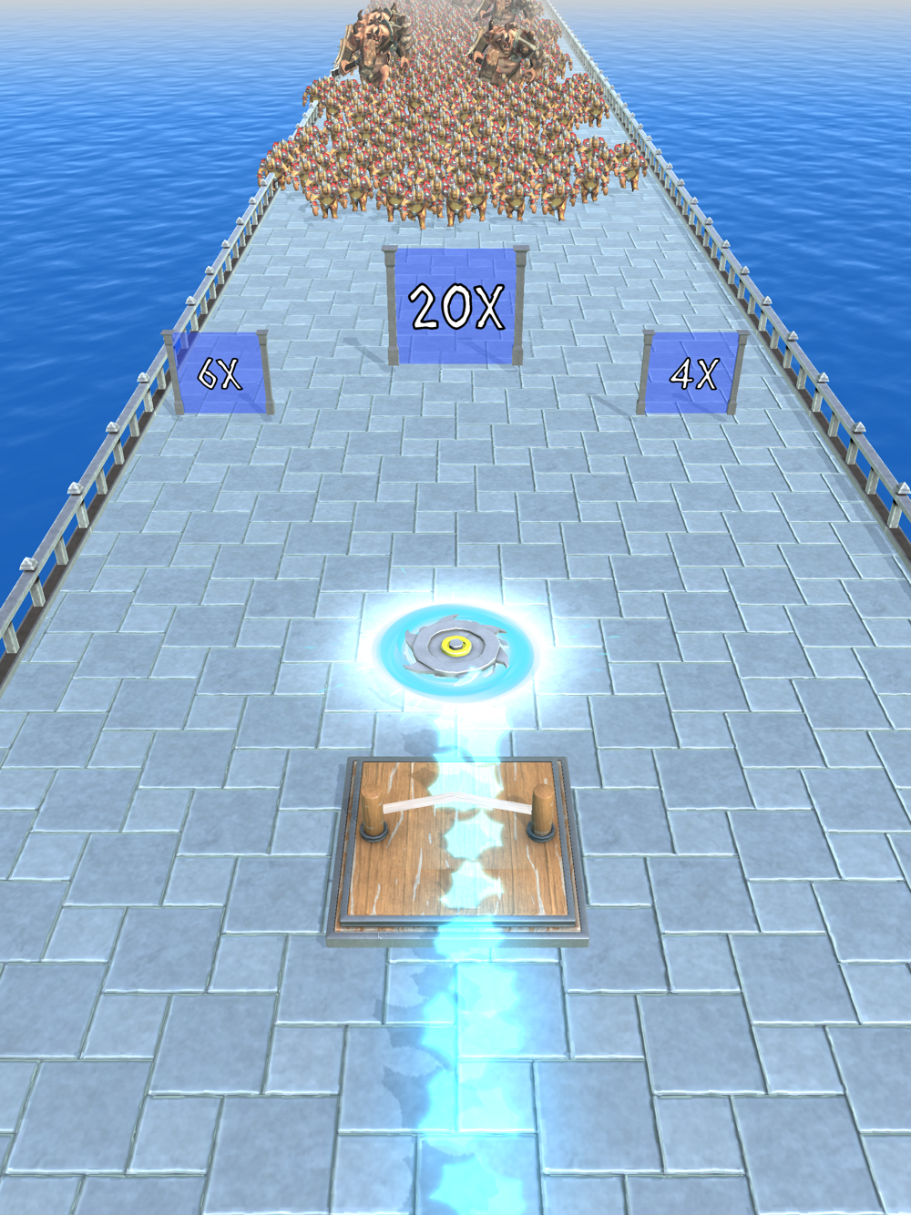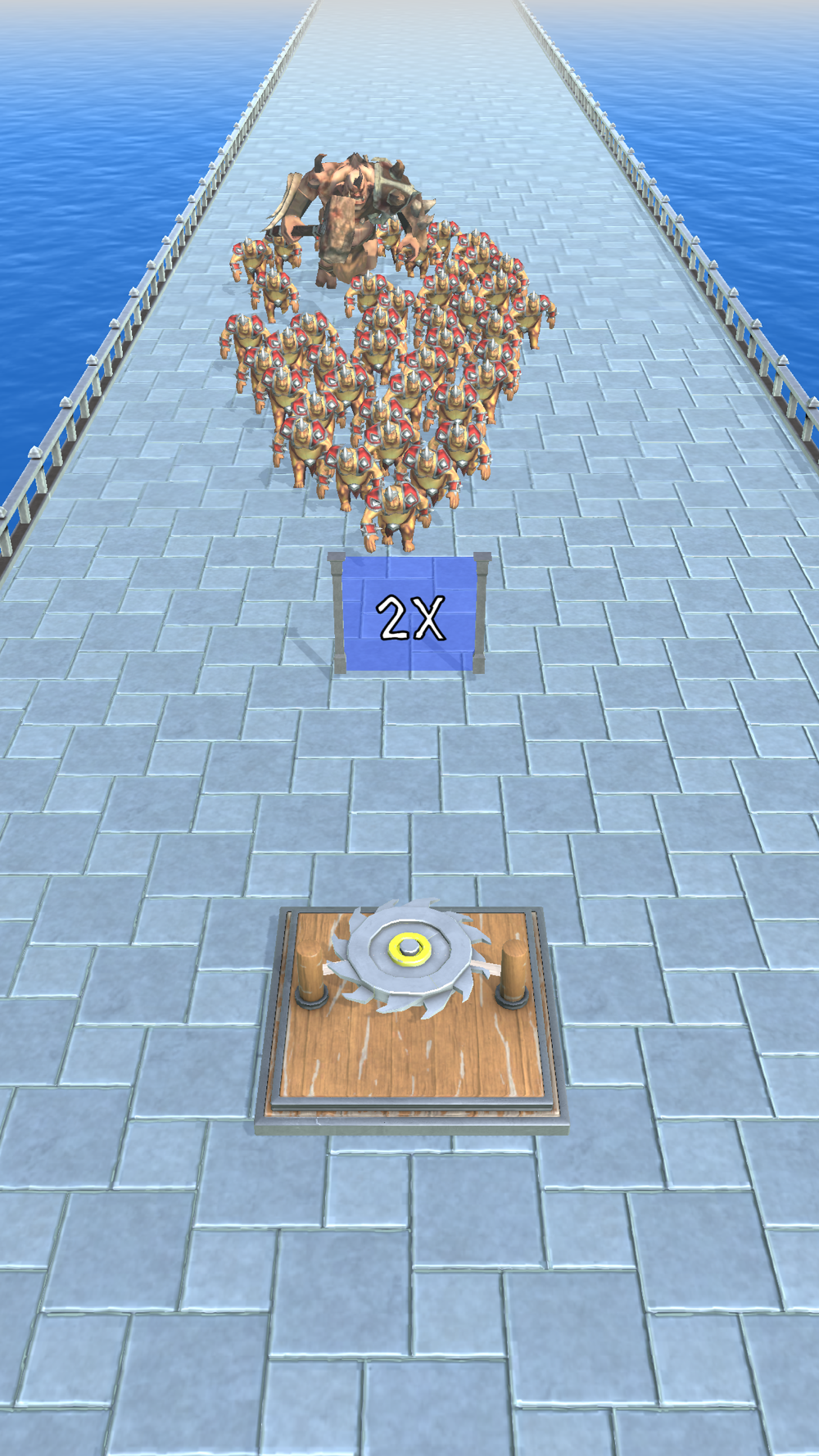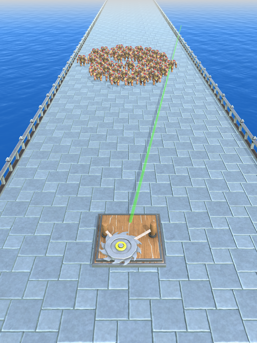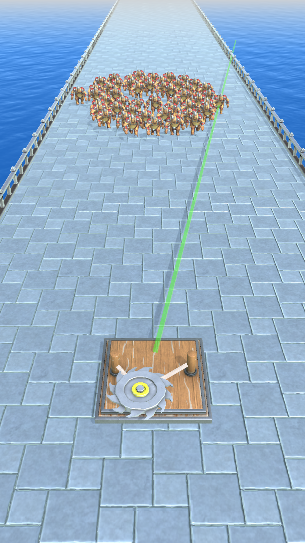 - Tap & drag the saw blade to aim, using the green line as a guide