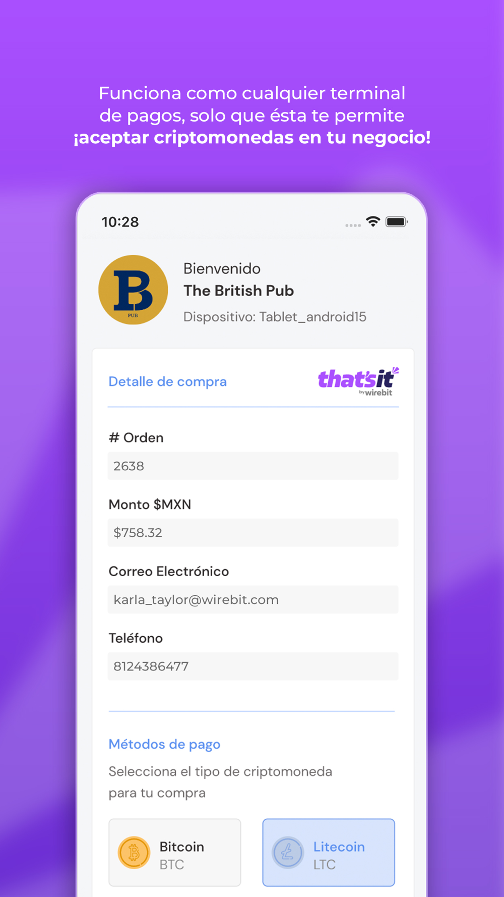 3. Vincula el dispositivo de tu comercio dentro de tu dashboard de Wirebit y That 's it!