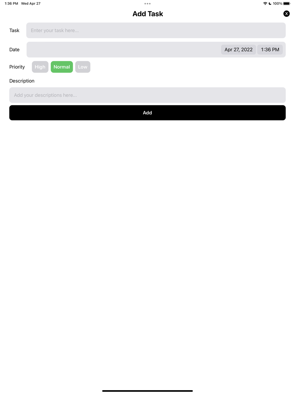 - Due Dates: Each new task has the option to input a due date and time. Use this feature to prioritize your tasks and keep track of when each time sensitive task is due.
