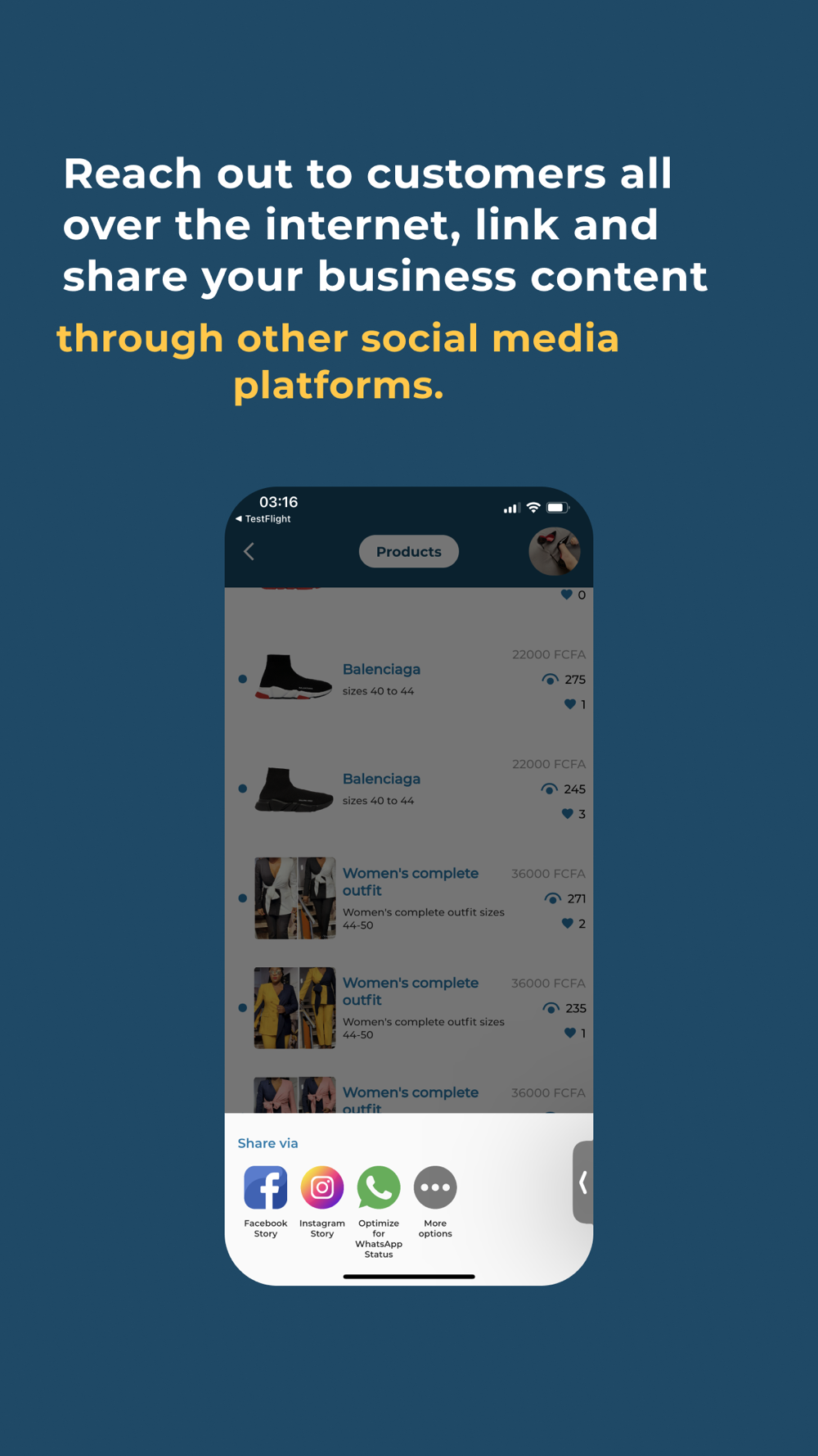 - Add 48-hour statuses (like WhatsApp) to present your products to Shoppy users.