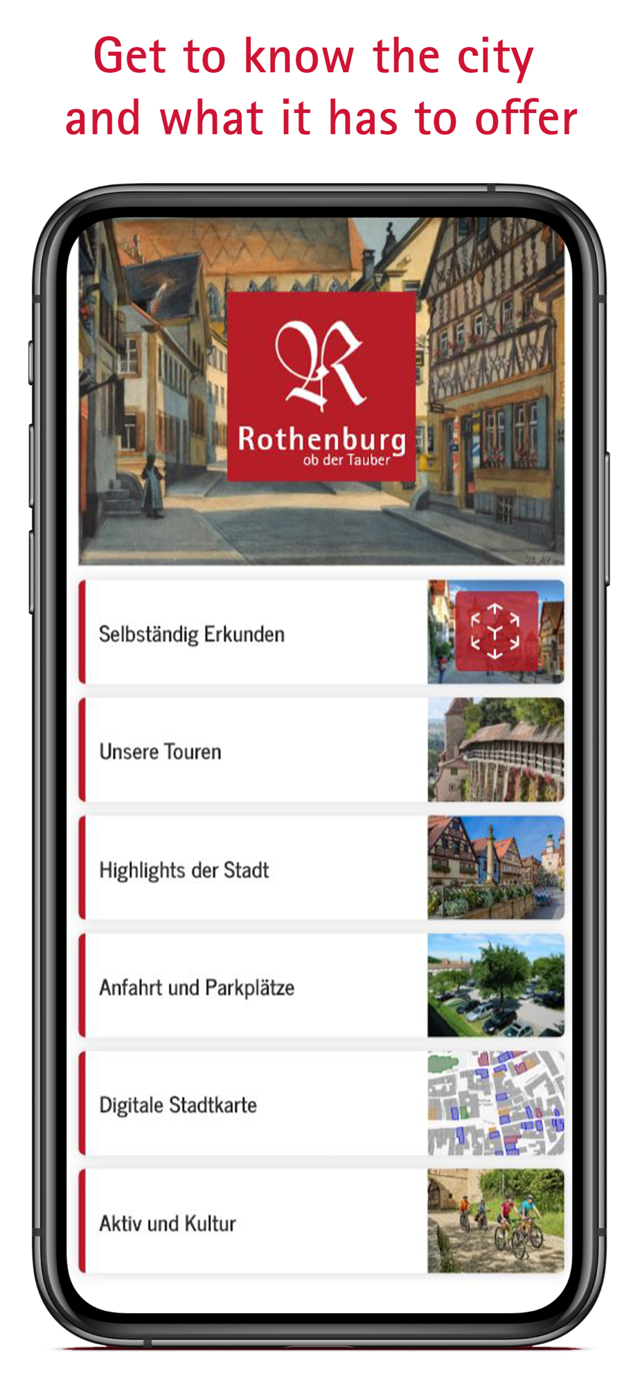Using augmented reality, exciting information is displayed on your smartphone at prominent locations in the old town. Follow the tours in the app and your smartphone will tell you where to find interesting sights using GPS. Children's city guide, Turmweg tower path and a great deal more ... Discover the town for yourself with the "Rothenburg App der Tauber".