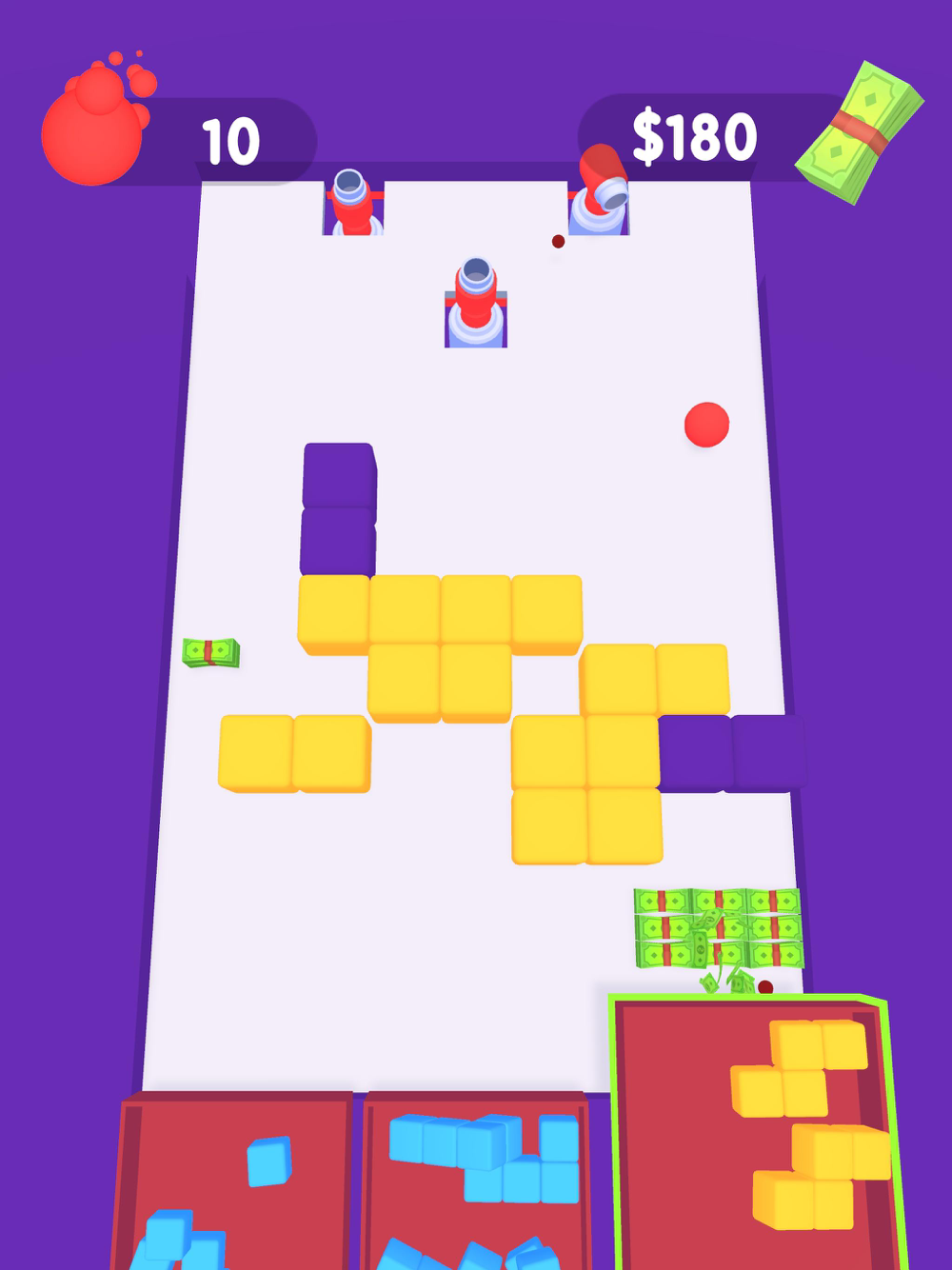 Tap to hold then swerve to place blocks of bricks as defense walls to stop cannon balls destroying all your money!