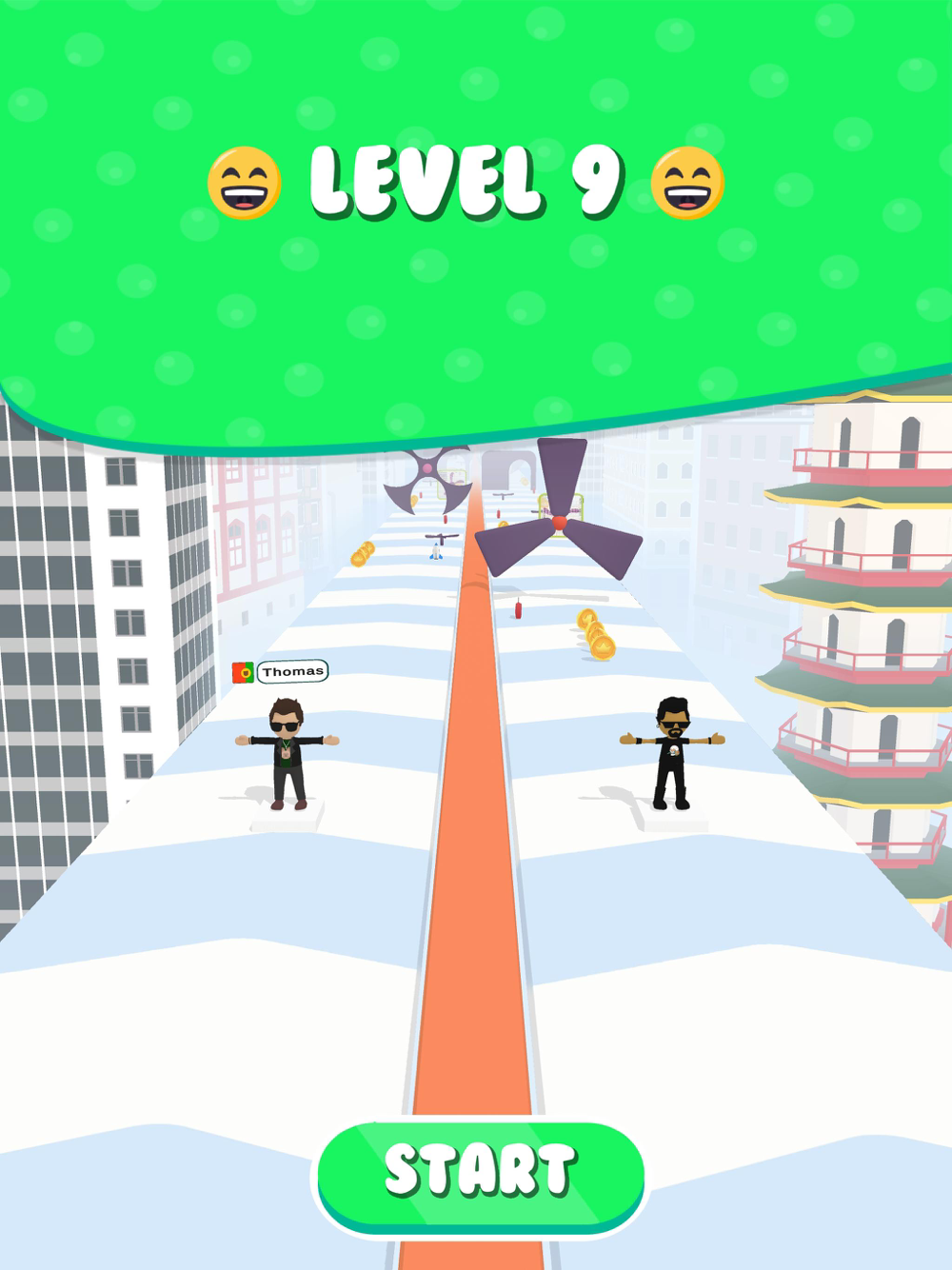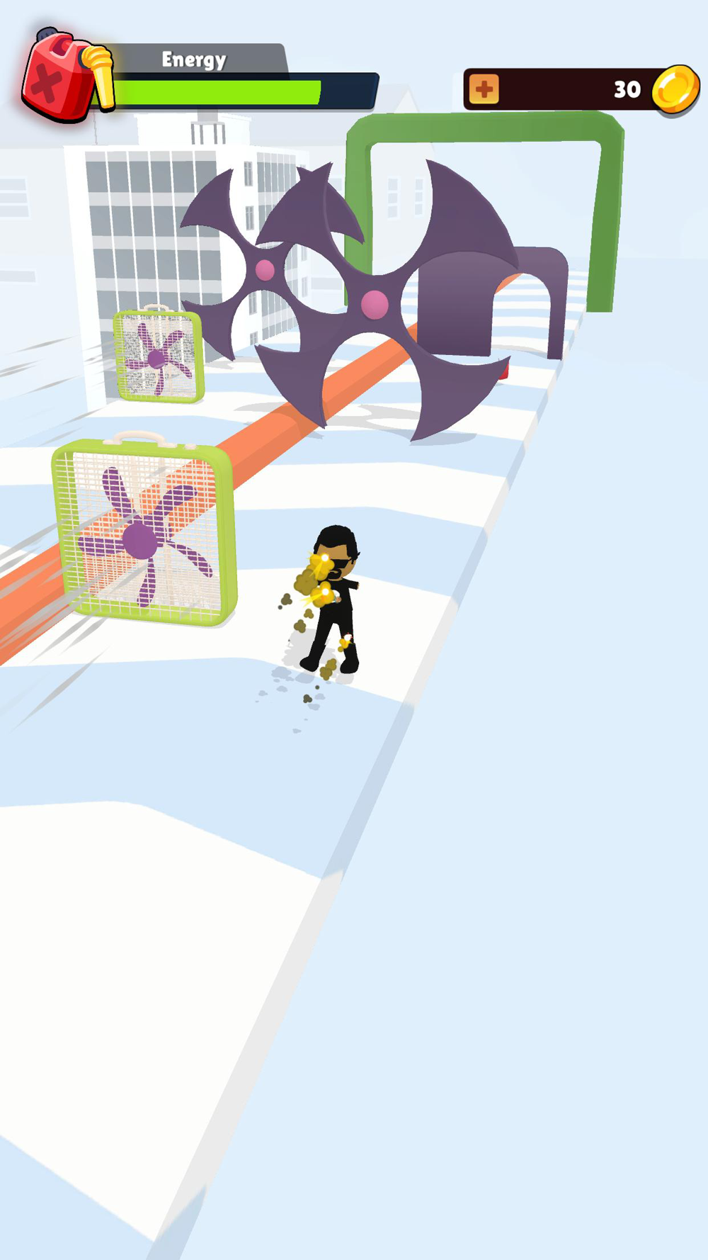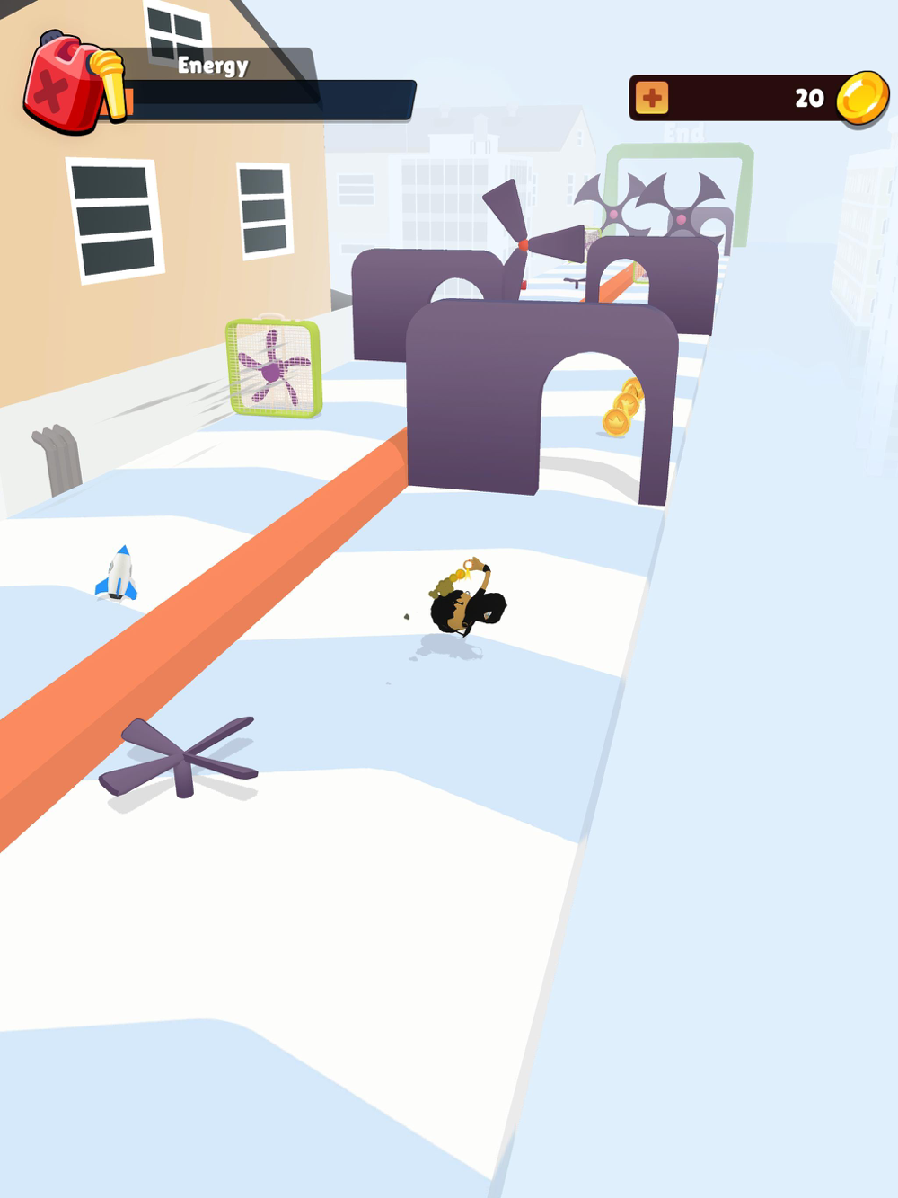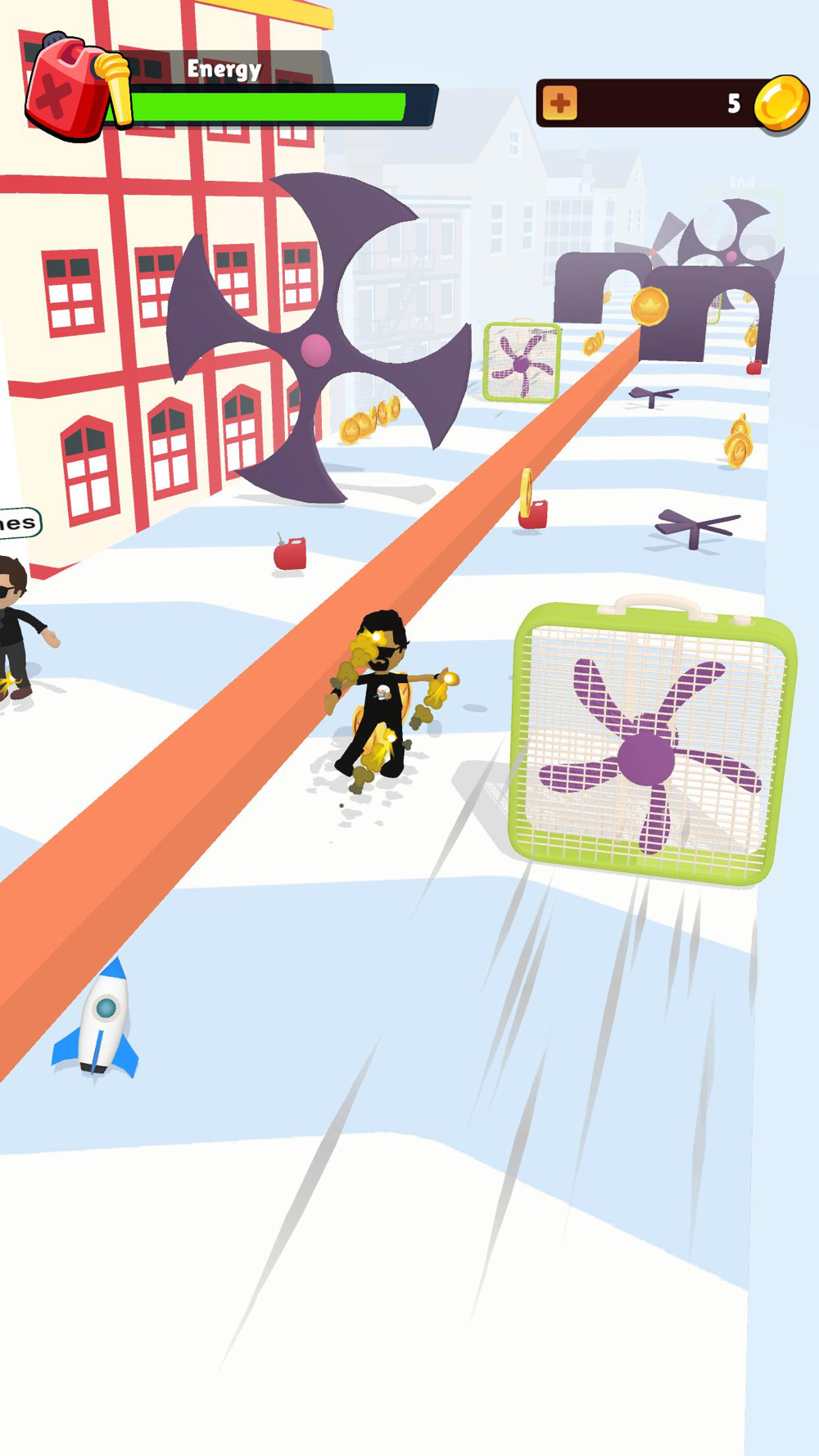 Place the rockets on the character and fly them to the finish line. Don't forget to collect gas cans on the way. If you don't collect the gas cans, you're halfway there. The more gold you collect, the better you start the next round.