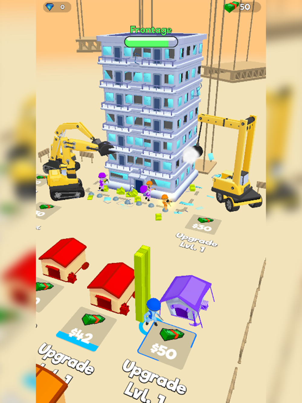 Grab a hammer and start to demolish the building. You may start alone but while playing you can gather your squad to help you destroy the building. The more you demolish the building, more upgrade will be unlock such as wrecking Ball to Drill and much more!
