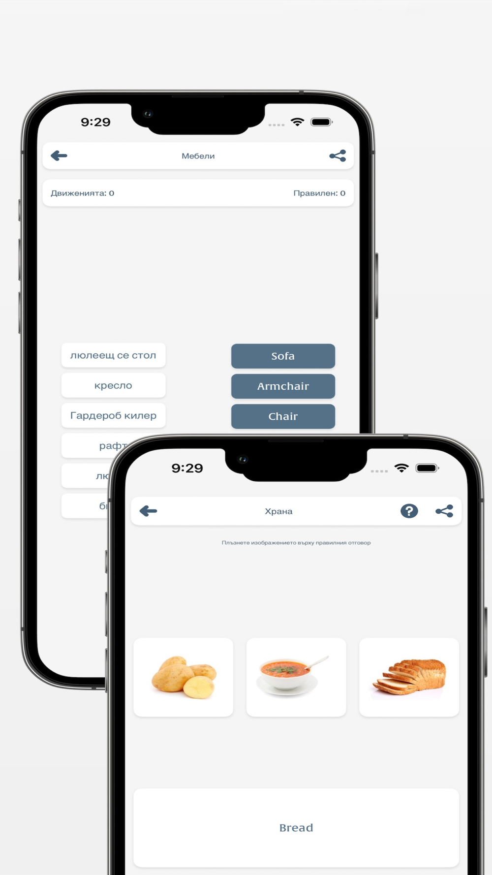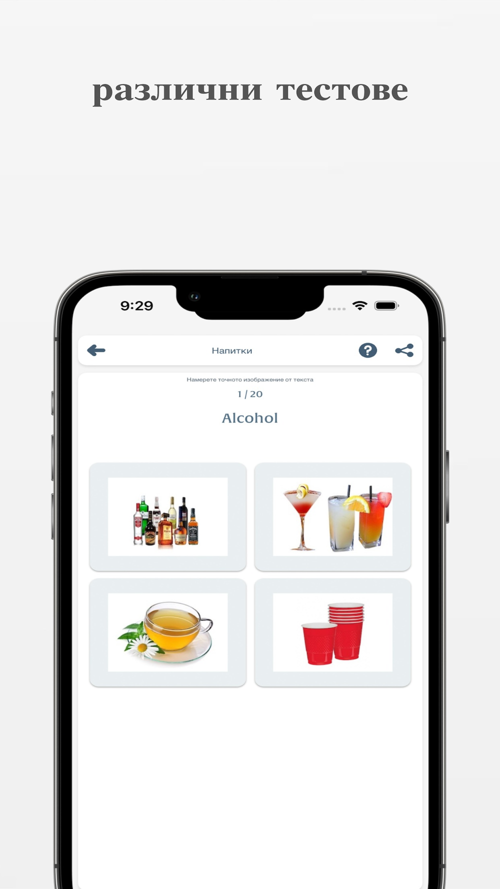 Един от най-ефективните начини да запомните думите е да ги научите от картина. Приложението ви позволява да намерите думи, илюстрирани със снимки.