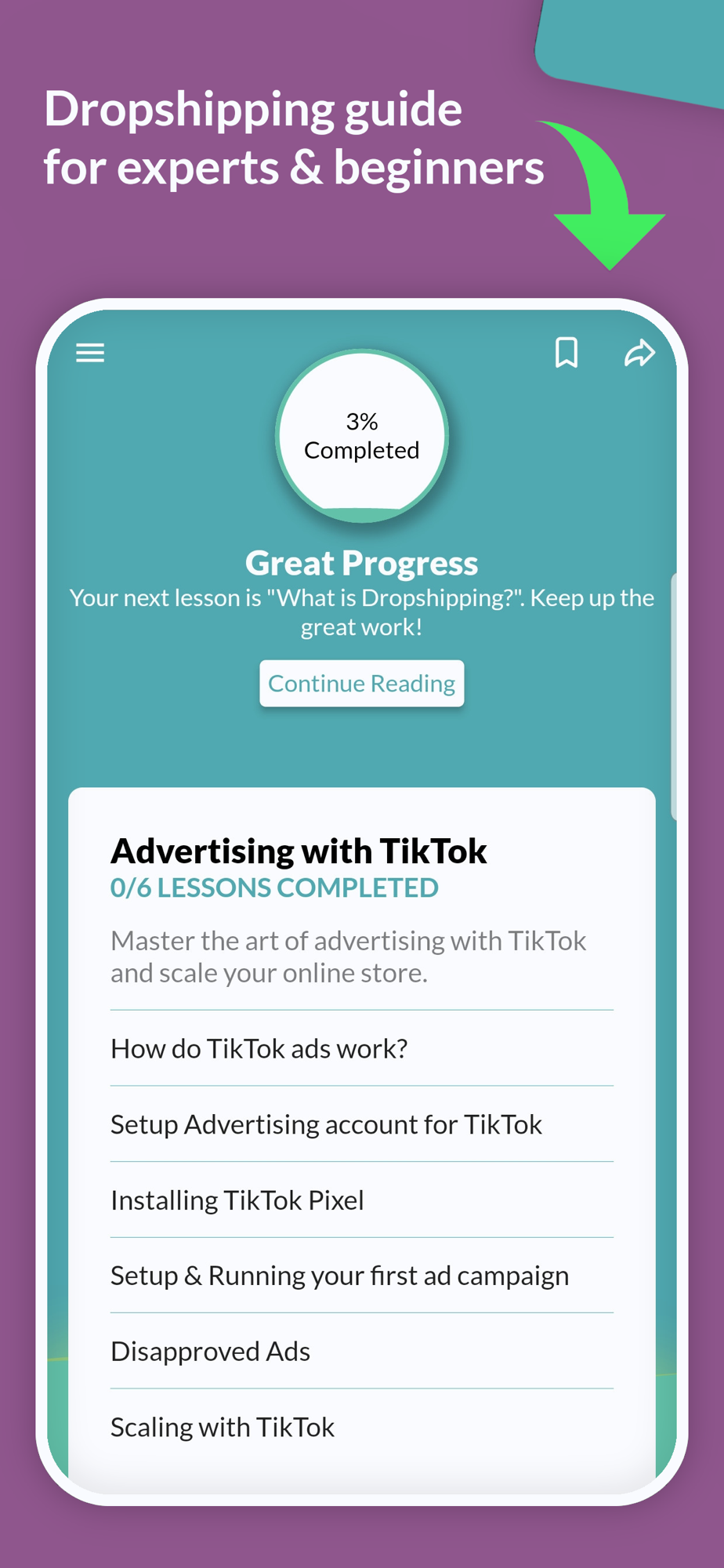 We have created a detailed course with screenshots, video tutorials, and an audiobook that goes over all dropshipping pillars. Moreover, we provide you with valuable tools to help you get started & there will be more on the road shortly.