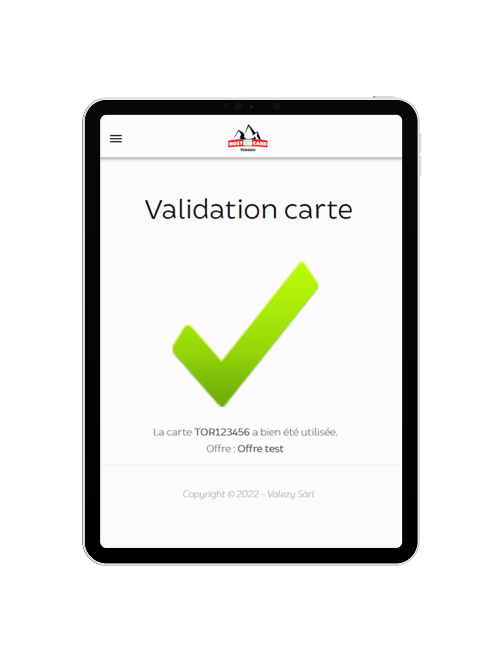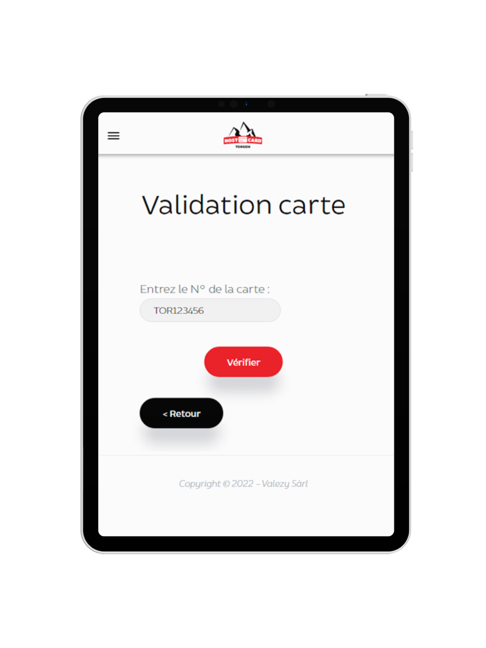 Cette application sert à la validation par les partenaires des prestations offertes par le programme Hostcard Torgon / OnPass
