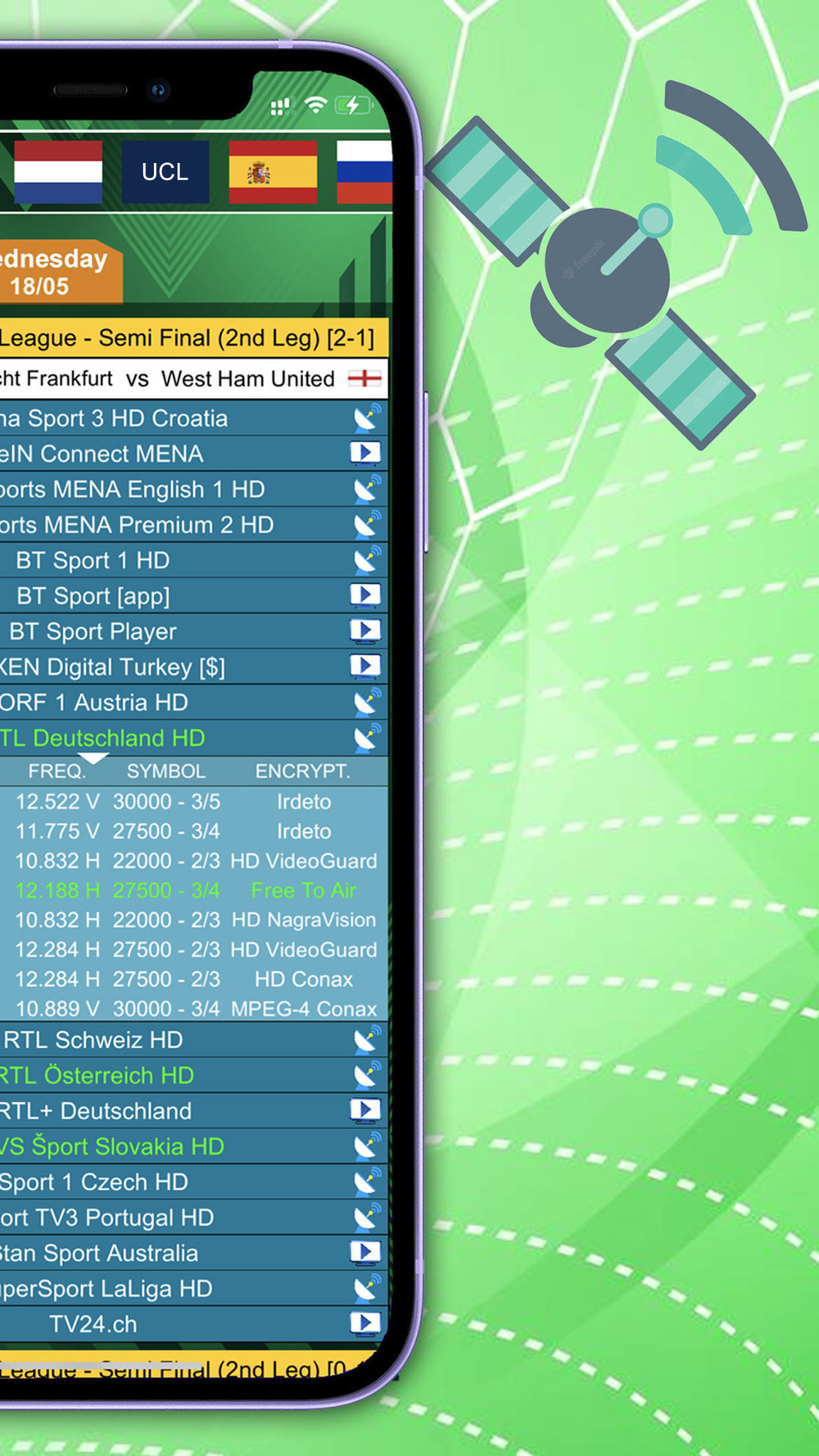 All the data of the next football matches of the most important championships in the world, and information on where to point the satellite dish to be able to see them.