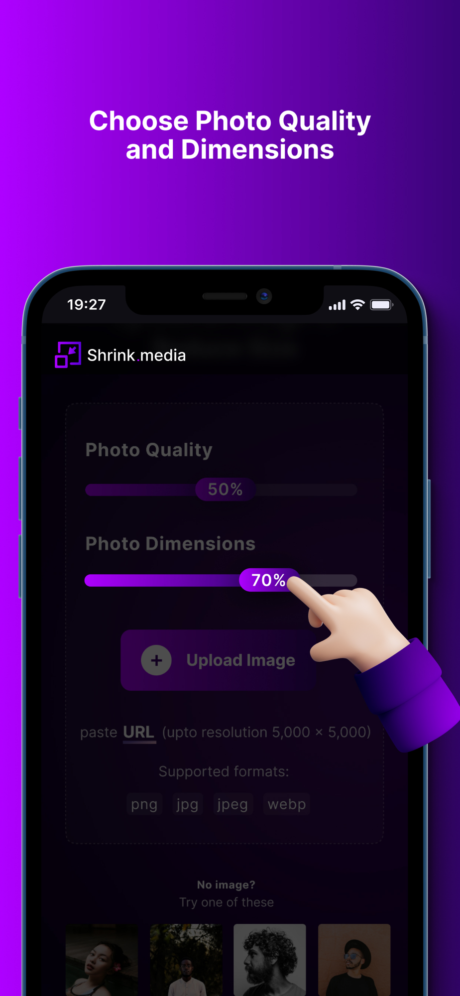 With Shrink.media, anyone can now reduce the file size of images, whether they're a professional photographer or a novice. Shrink.media is the fastest, most intuitive & Intelligent image file reducer tool in the market today. It can reduce size of images and doesn't require any technical knowledge to use. You truly get exceptional quality results when using Shrink.media for reducing size of your images. You can compress PNG, JPEG, WEBP files.