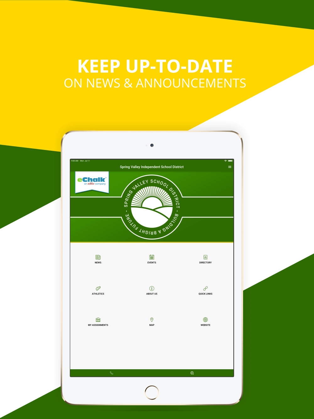 The Spring Valley ISD app by eChalk enables parents, students, teachers and administrators to quickly access the resources, tools, news and information to stay connected and informed!