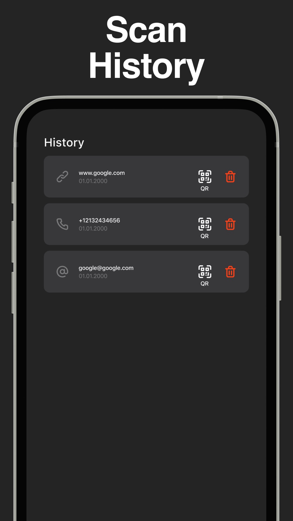 Search QR or barcodes in gallery files or scan directly with your camera.