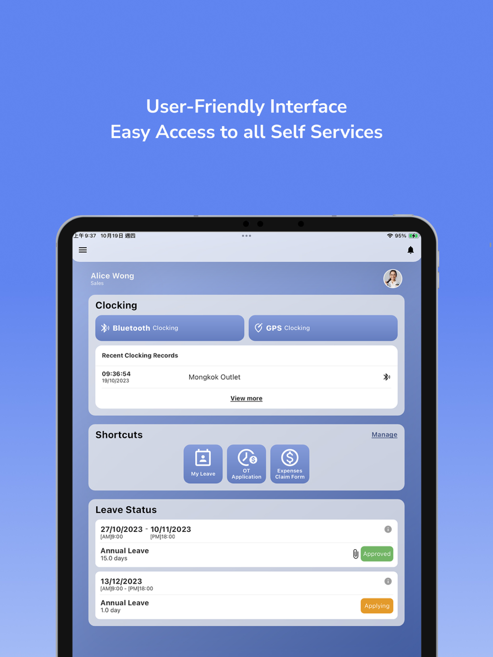 The BBHRMS app consists of a list of employee and management self services including but not limited to employment profile management, leave management, claim management for enhancing user experience.
