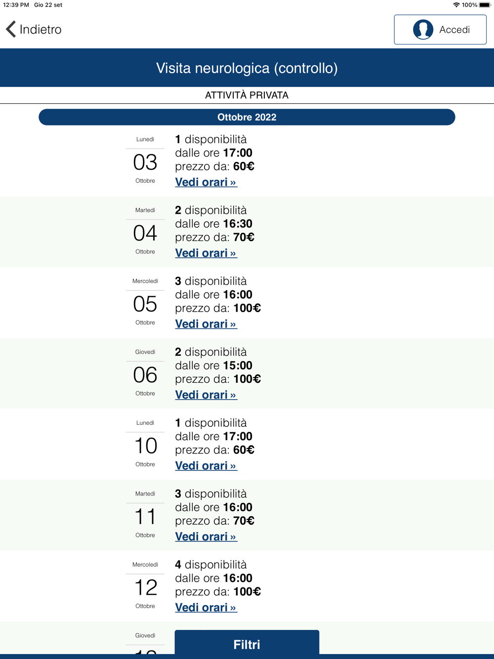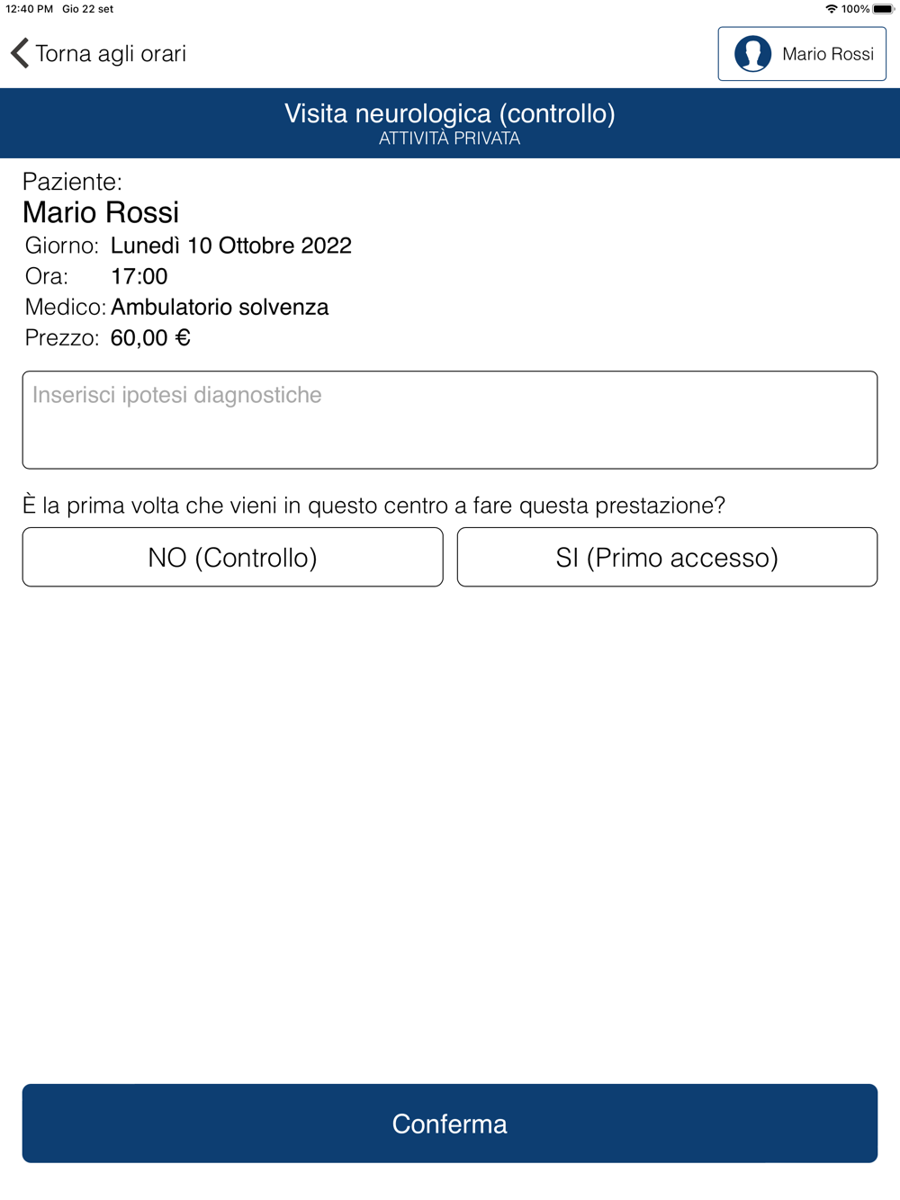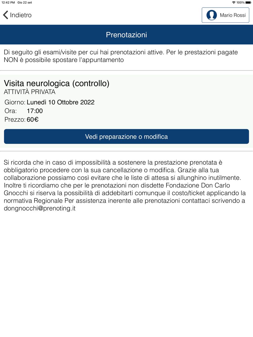 Scegli l'esame o la visita specialistica, il medico che desideri, il giorno e l'ora del tuo appuntamento. In totale trasparenza con l'app Don Gnocchi potrai visualizzare anche il costo della prestazione.