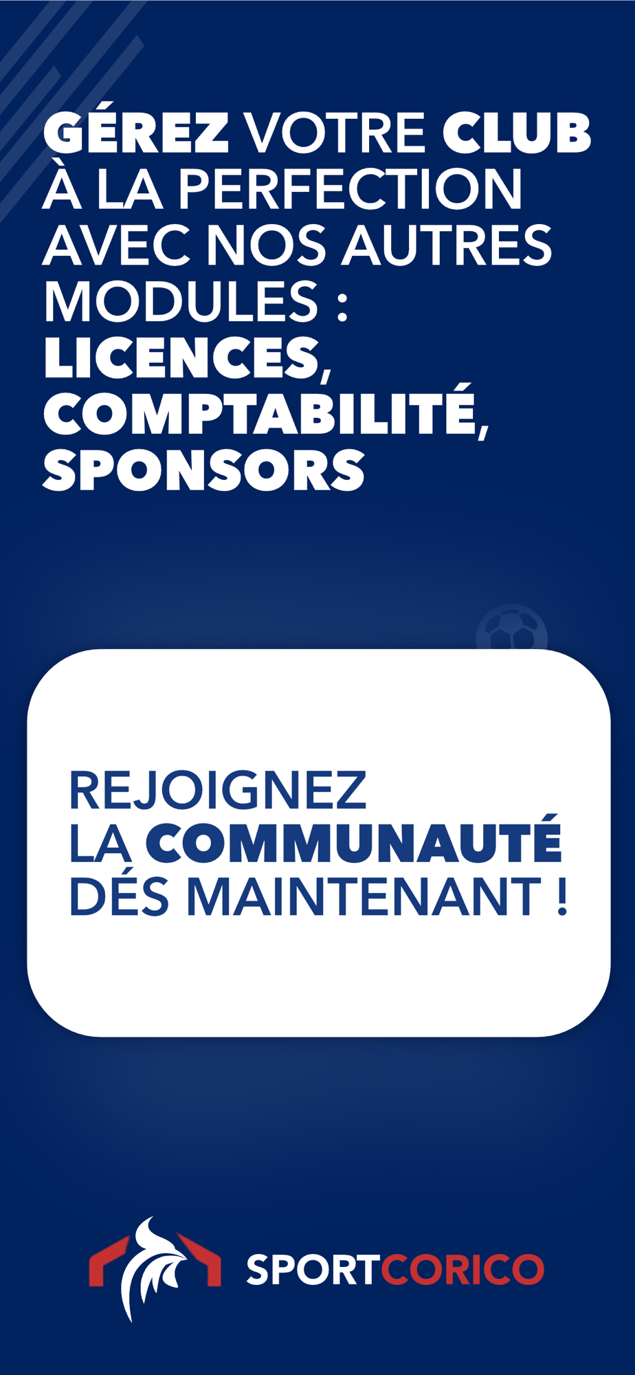 Les fonctionnalités sur la gestion des clubs nécessitent la création d'un compte SportCorico. Vous pouvez alors rejoindre votre club et vous simplifier la vie !
