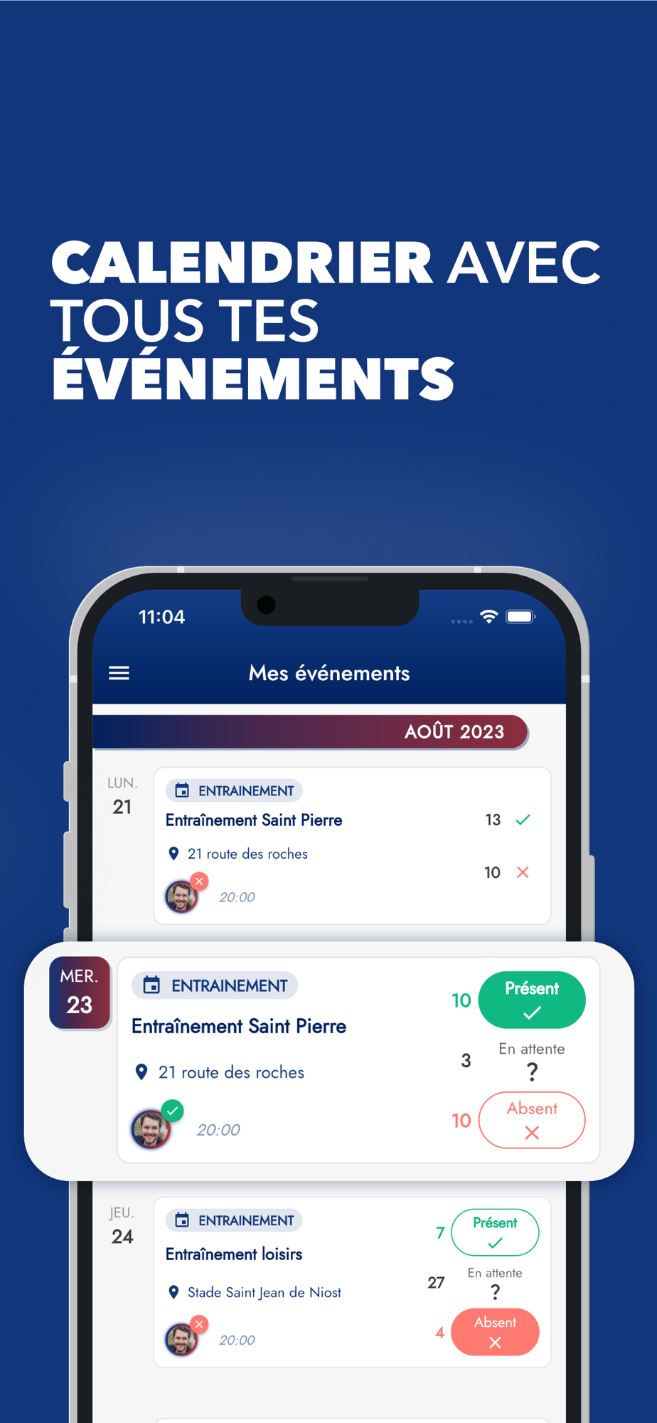 - Gagnez du temps grâce au bilan des présences, vous savez d'avance qui est présent et pouvez mieux organiser vos matchs, séances d'entraînements ...