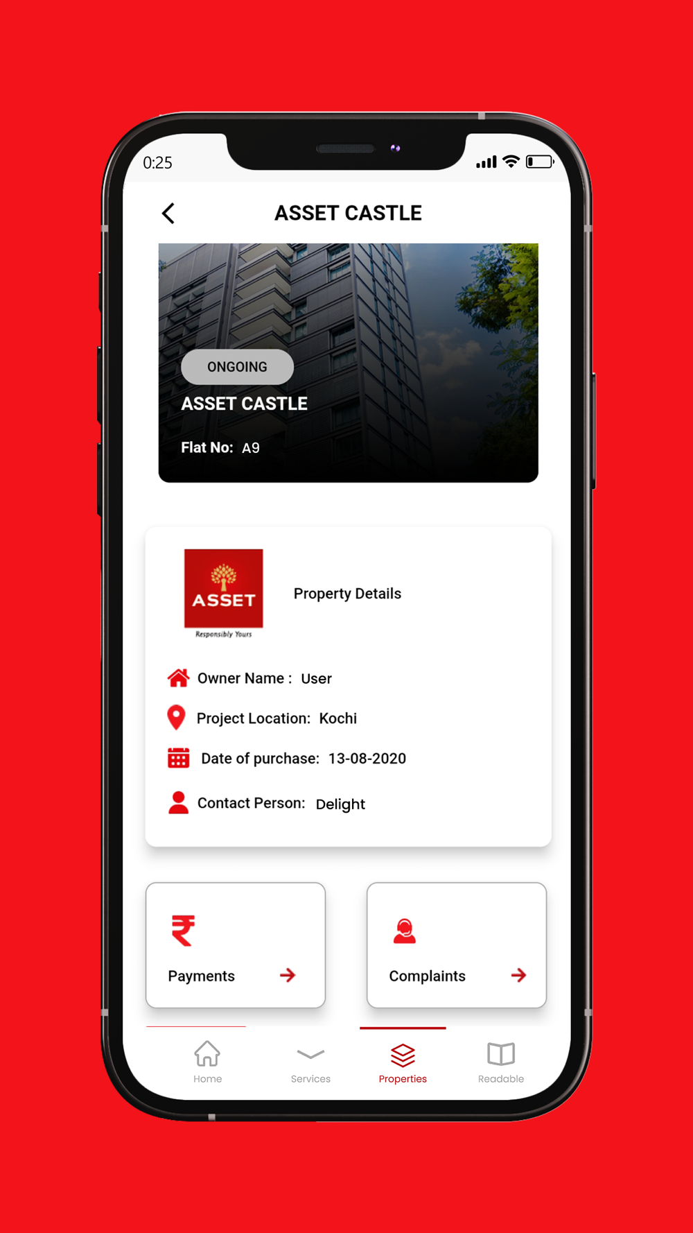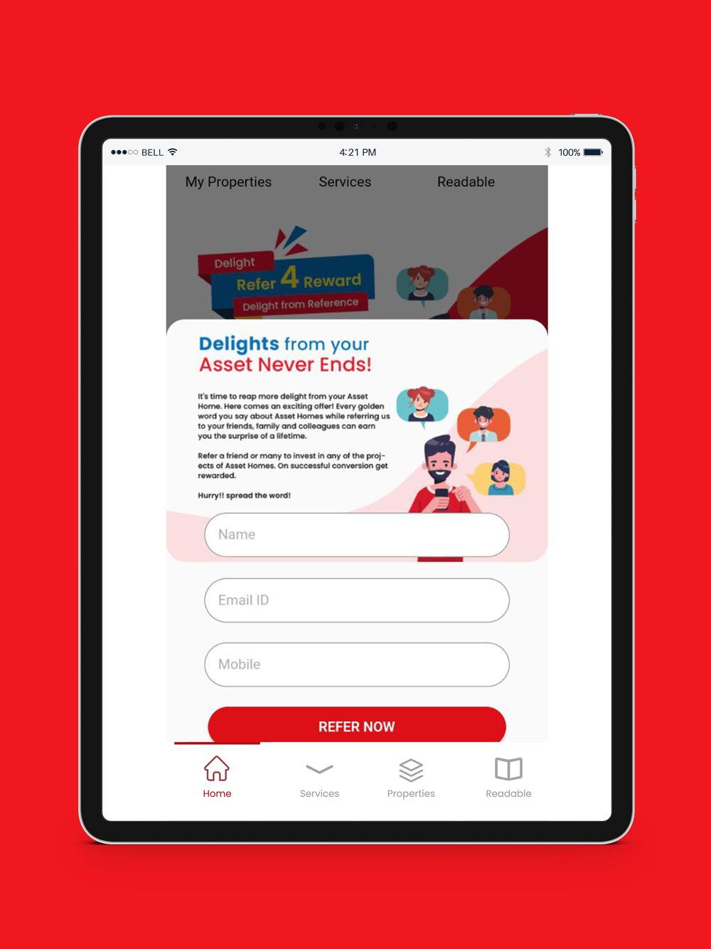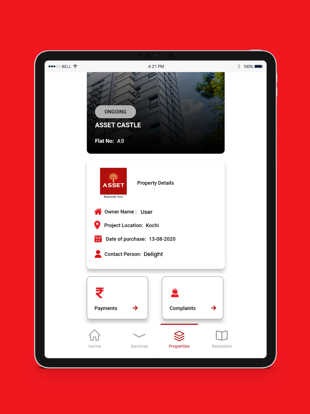 Asset Delight Division takes care of all customer-related activities of Asset Homes. In the Asset Delight App customers have the provision to view their property and property details. Customer can register their complaints, and refer their friend to asset homes. Customers can view all the delight services provide by asset homes in this App. Monthly readable will be displayed in the monthly readable section of the App. Asset homes customers can view receipts by clicking on payment in the payments section. Asset homes customers can request service and view service requests through the App.