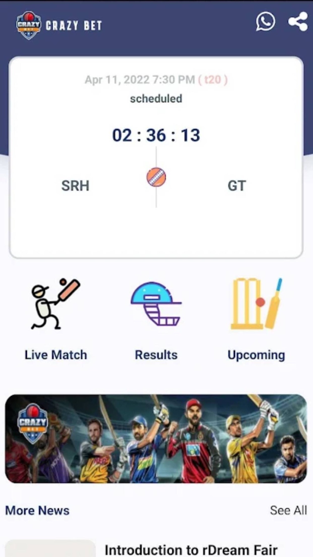 Home - Home screen displays multiple Live, Upcoming and Finished matches.
