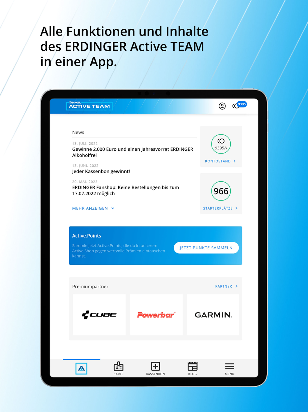 Alle Funktionen und Inhalte des ERDINGER Active TEAM in einer App.