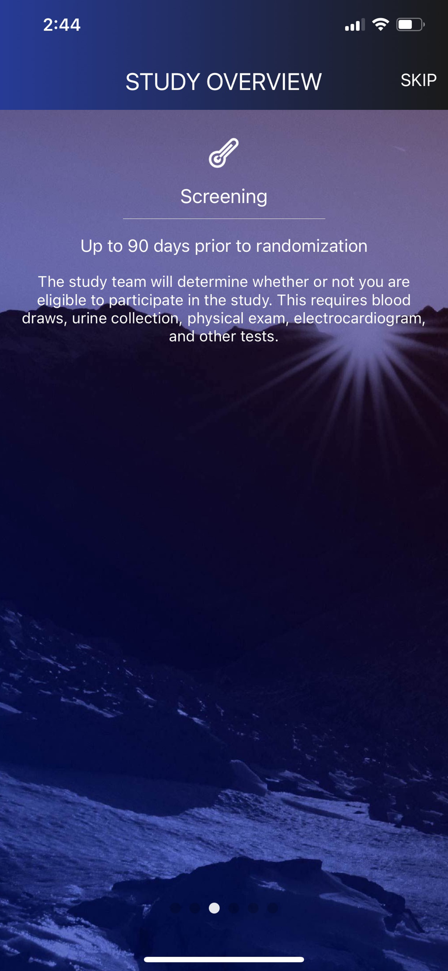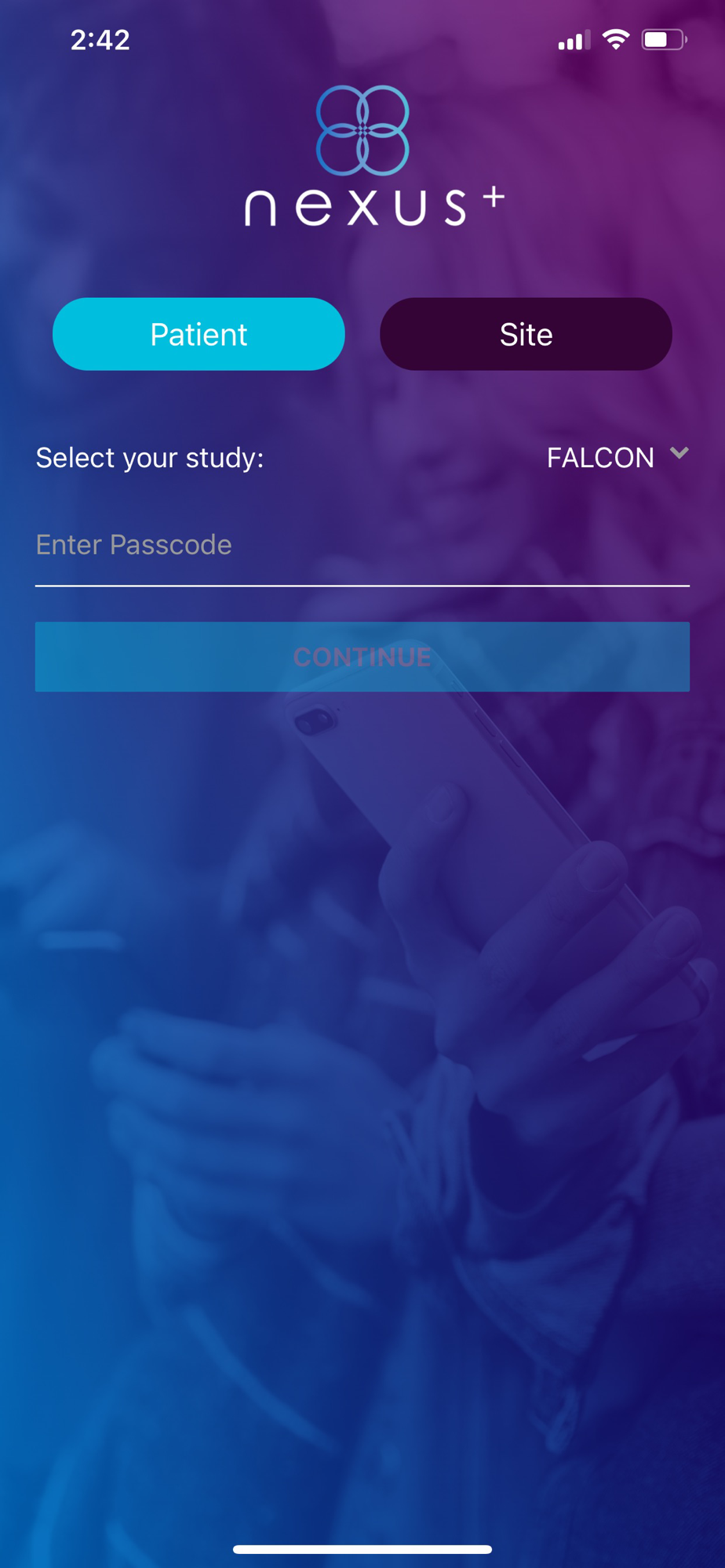 Welcome to the Nexus+ app! Please see your study doctor on how to use the app and login information. The app will help study participants better understand what is involved in being part of Reata clinical study and how participants are progressing toward completion of the study. The app also contains tools for clinical sites to aid in screening efforts and scheduling.