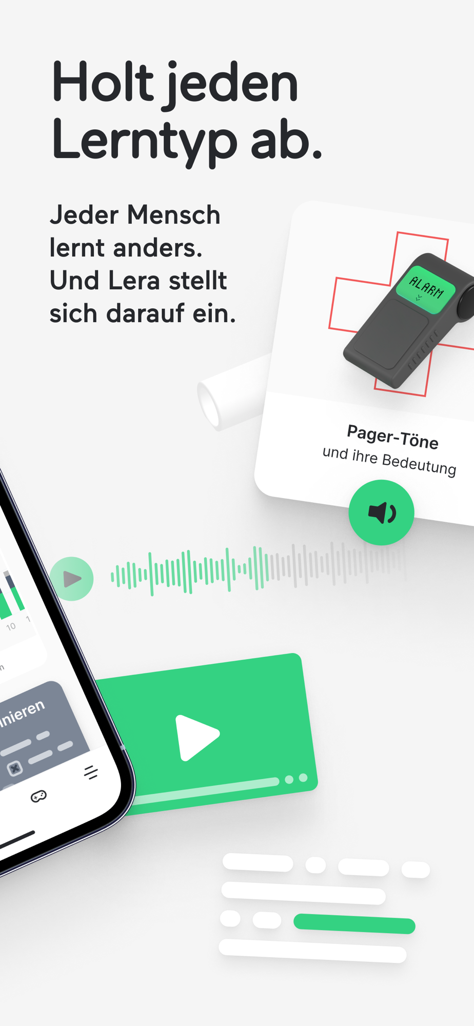 Jeder Mensch lernt anders. Daher bietet Lera die Möglichkeit, Wissen auf vielfältige Art zu vermitteln. Dank verschiedenster Lernmethoden erreicht Lera alle Lerntypen und sorgt für abwechslungsreiche Kurse.