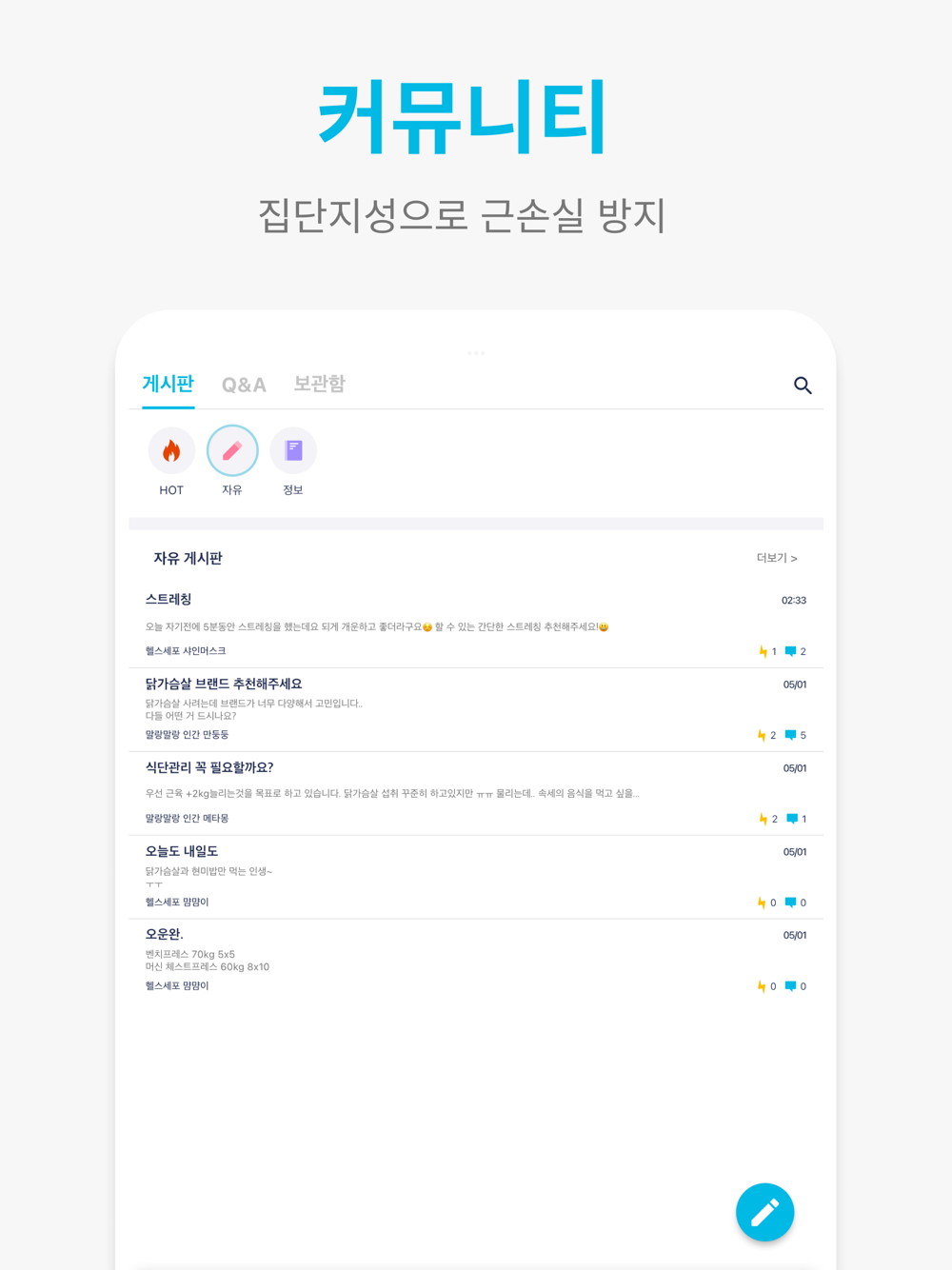 - 자유/정보 게시판에서 운동과 관련된 잡담, 꿀팁 공유