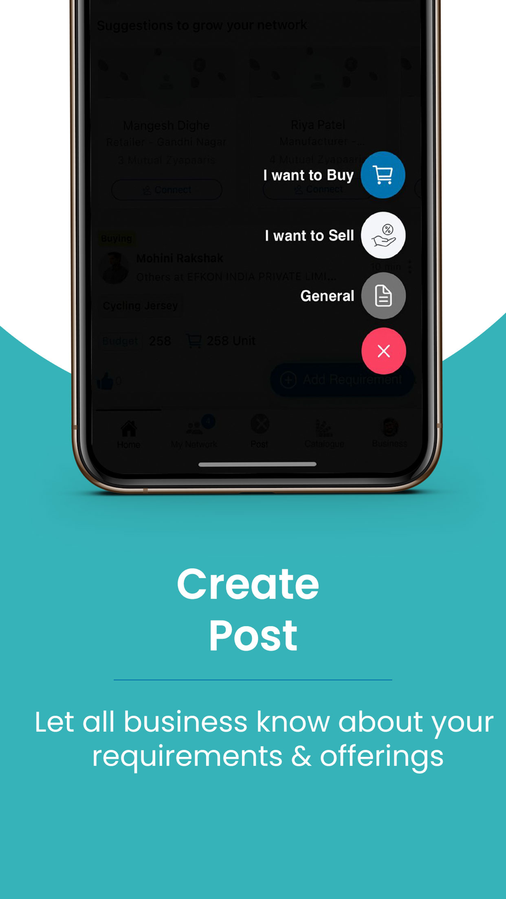 The platform also allows the creation of new groups and pages to deal with relevant people & products. Zyapaaris gets regular updates on their industries anytime, anywhere just by being a part of closed groups & pages. Apart from these, by using the Team function, authorized employees can post on behalf of the company.