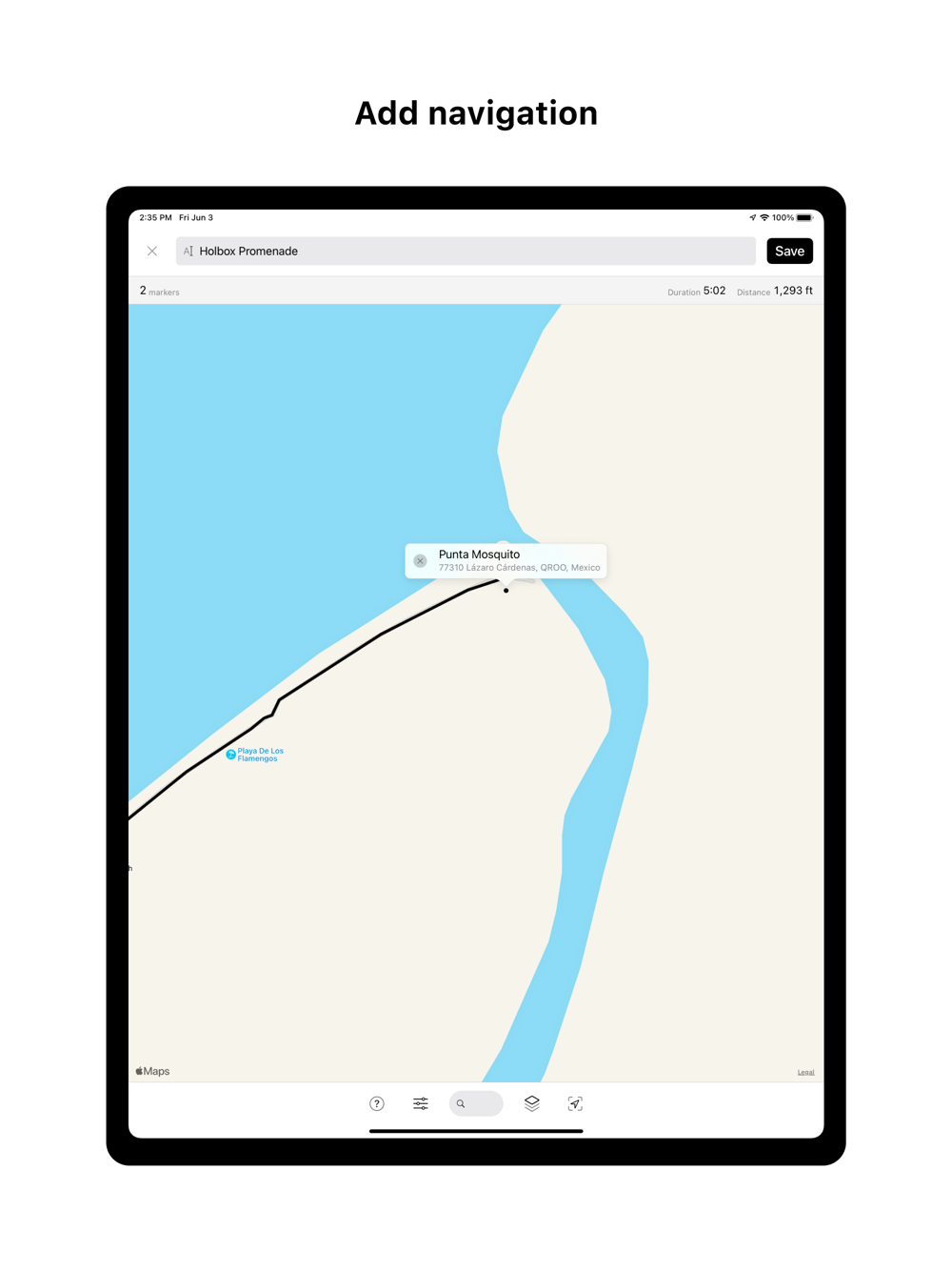 Add marks to points of interest in your map, or to the starting and ending locations of your navigation.