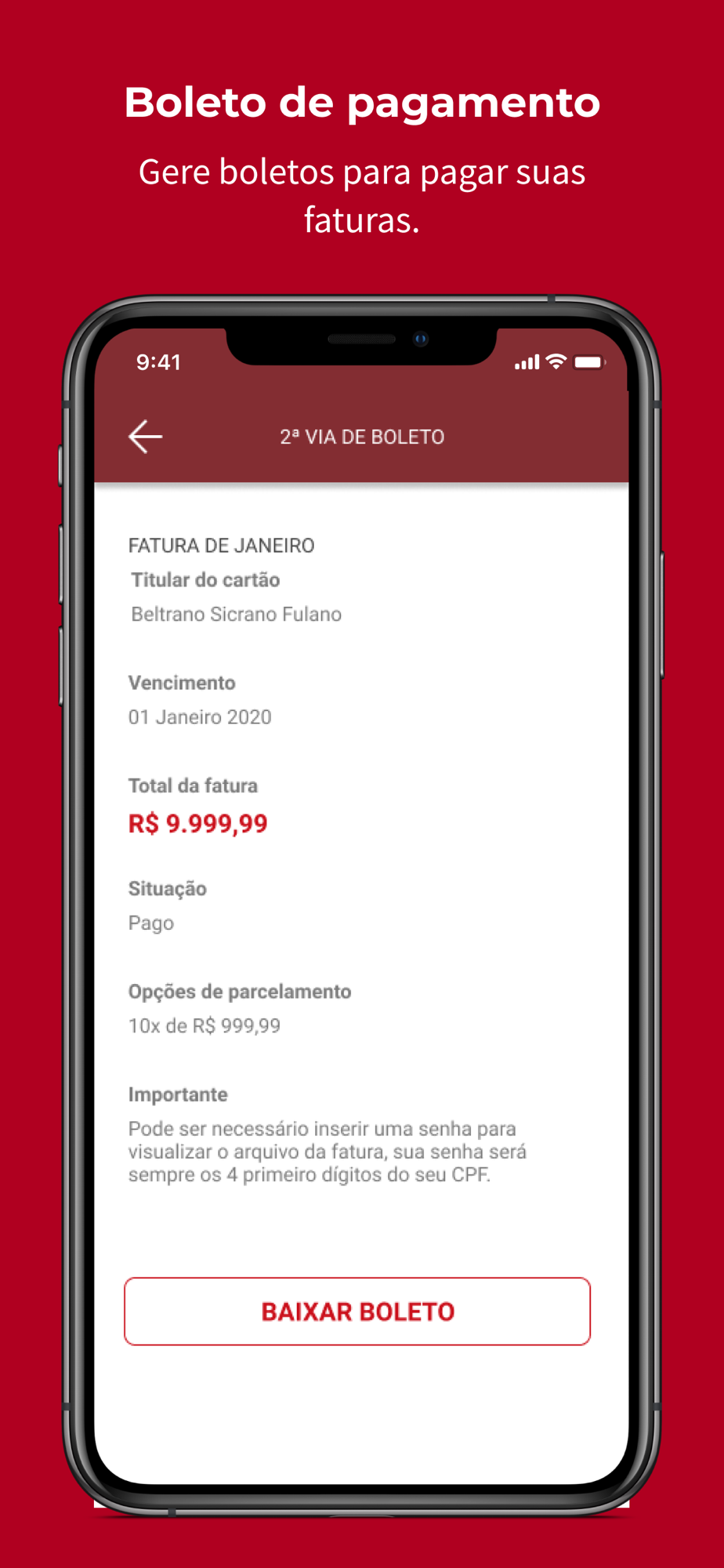 - Consultar, detalhadamente, suas faturas mais importantes de seu cartão;