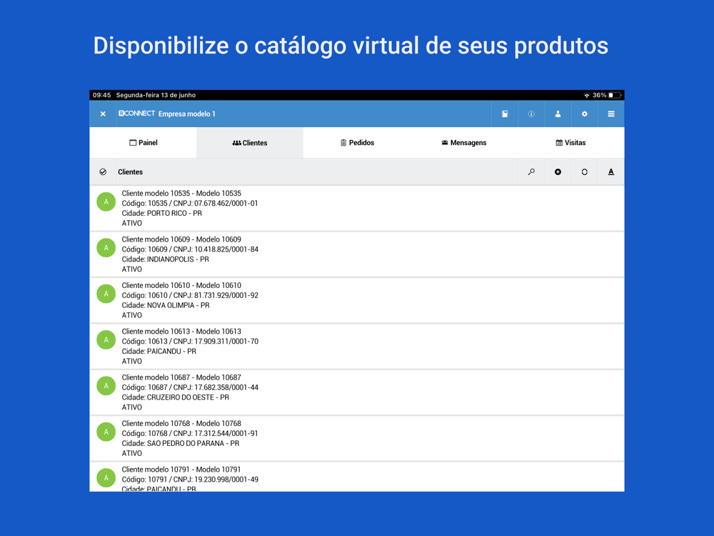 Aplicativo de força de vendas para usuários do sistema RConnect.