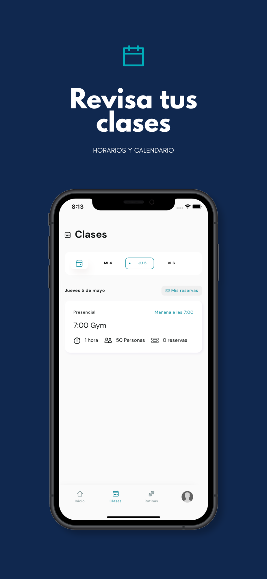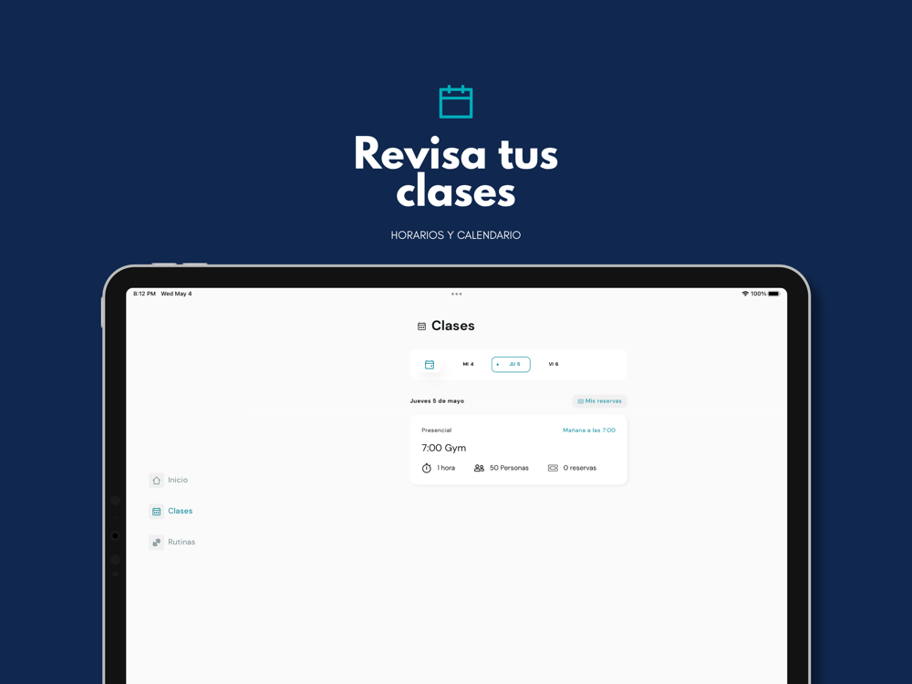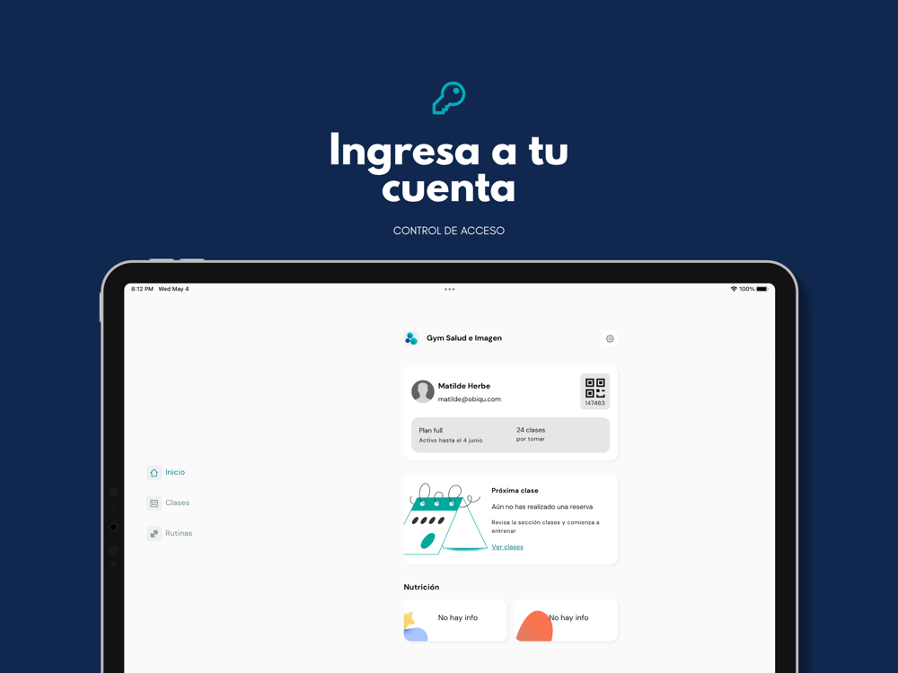 Te permitirá acceder rápidamente a tu perfil, reservar clases, recibir notificaciones y renovar.
