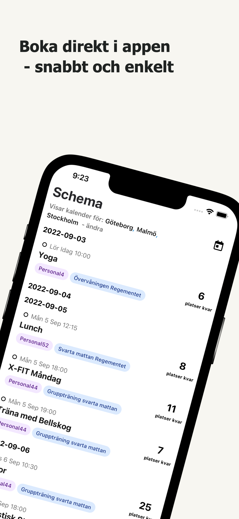 - Checka in på gymmet