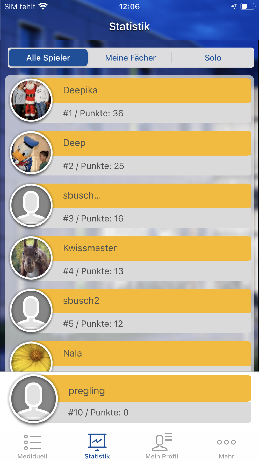 Fordert eure Kommiliton*innen, Freunde oder Kollegen zu einem Quiz-Match heraus oder testet euer Wissen und beantwortet Fragen zur Medizinischen Psychologie und Soziologie. Suche dir einen Nutzernamen aus und lege direkt los!