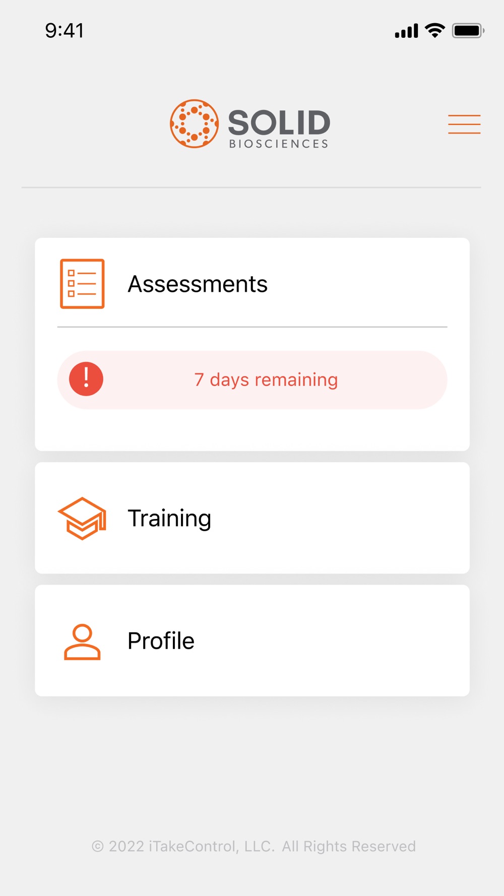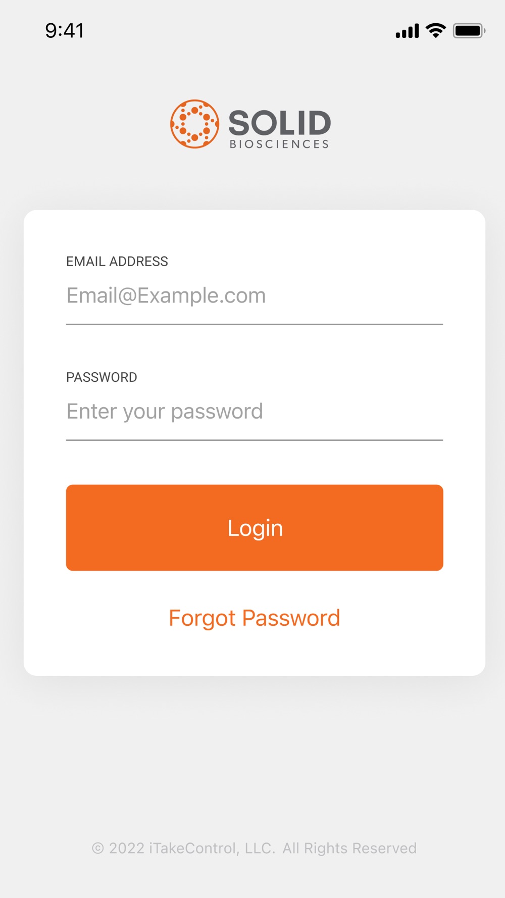 This is a mobile app in support of the Solid Remote Study. You will only be able to login and utilize this mobile application if you have been contacted and received an email invitation to register. This application is brought to you by iTakeControl, it is designed to showcase some of our capabilities