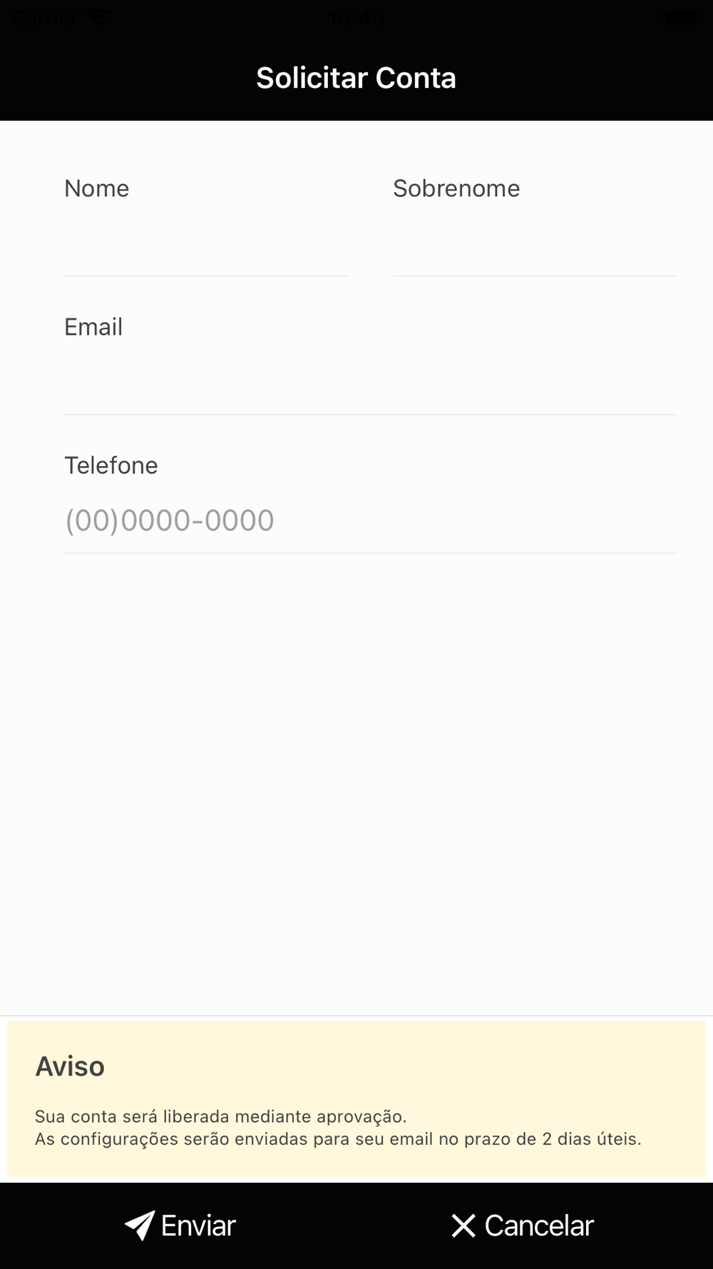 Opção de exclusão de conta.