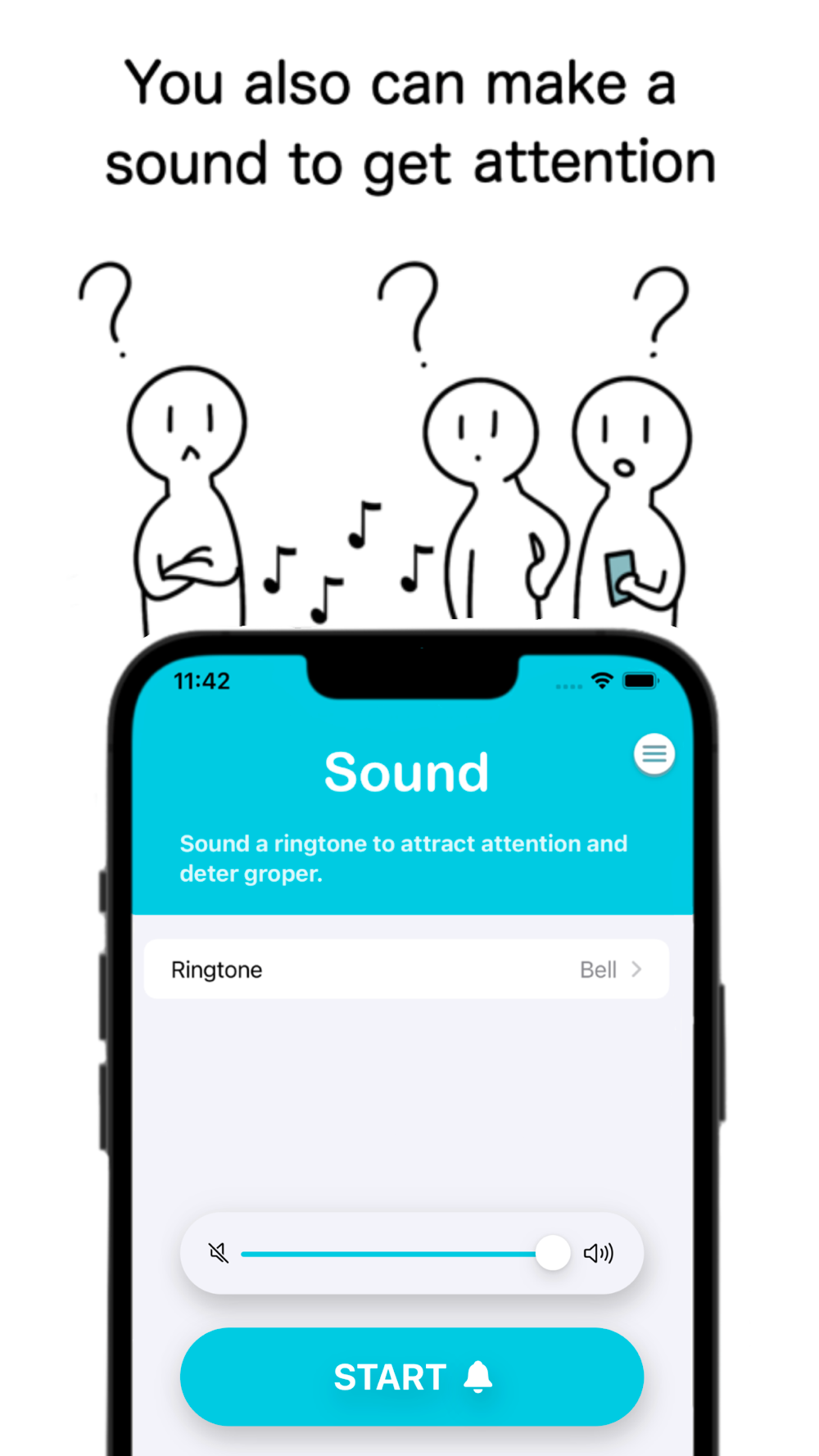 A ringtone is used to deter molesters by attracting the attention of those around you. Since it is not a buzzer but a ringtone, it is easy to use even in cases where you are not sure (but suspect) that the person is a molester. The sound can be played from the iPhone's speaker even in silent mode or when headphones are connected.