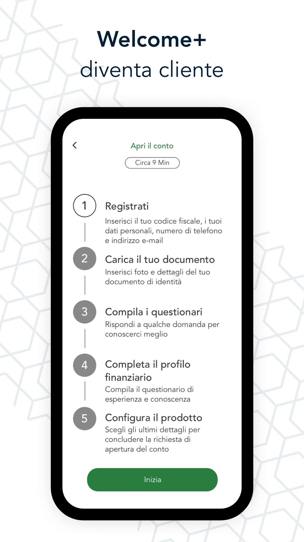 Welcome+ è l’applicazione che permette di richiedere l’apertura di un IW Conto Start o IW Conto Trader in pochi e semplici passi.